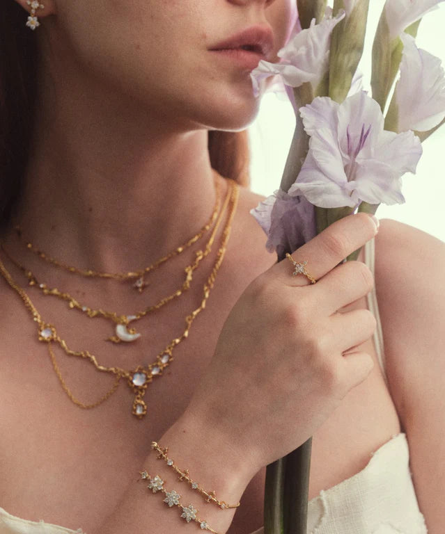 İndirimAltın Ay Yıldız Taşlı Küpe