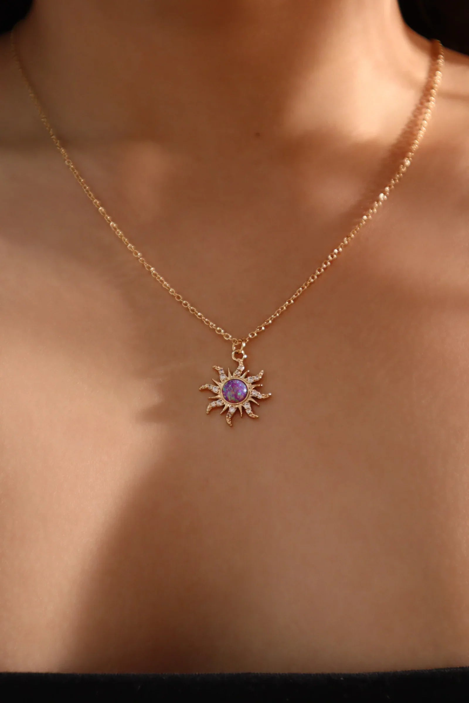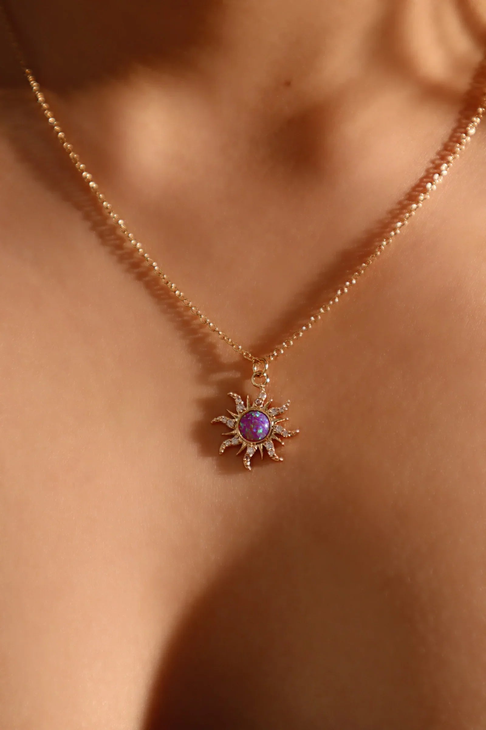 Altın Mor Opal Güneş Kolye