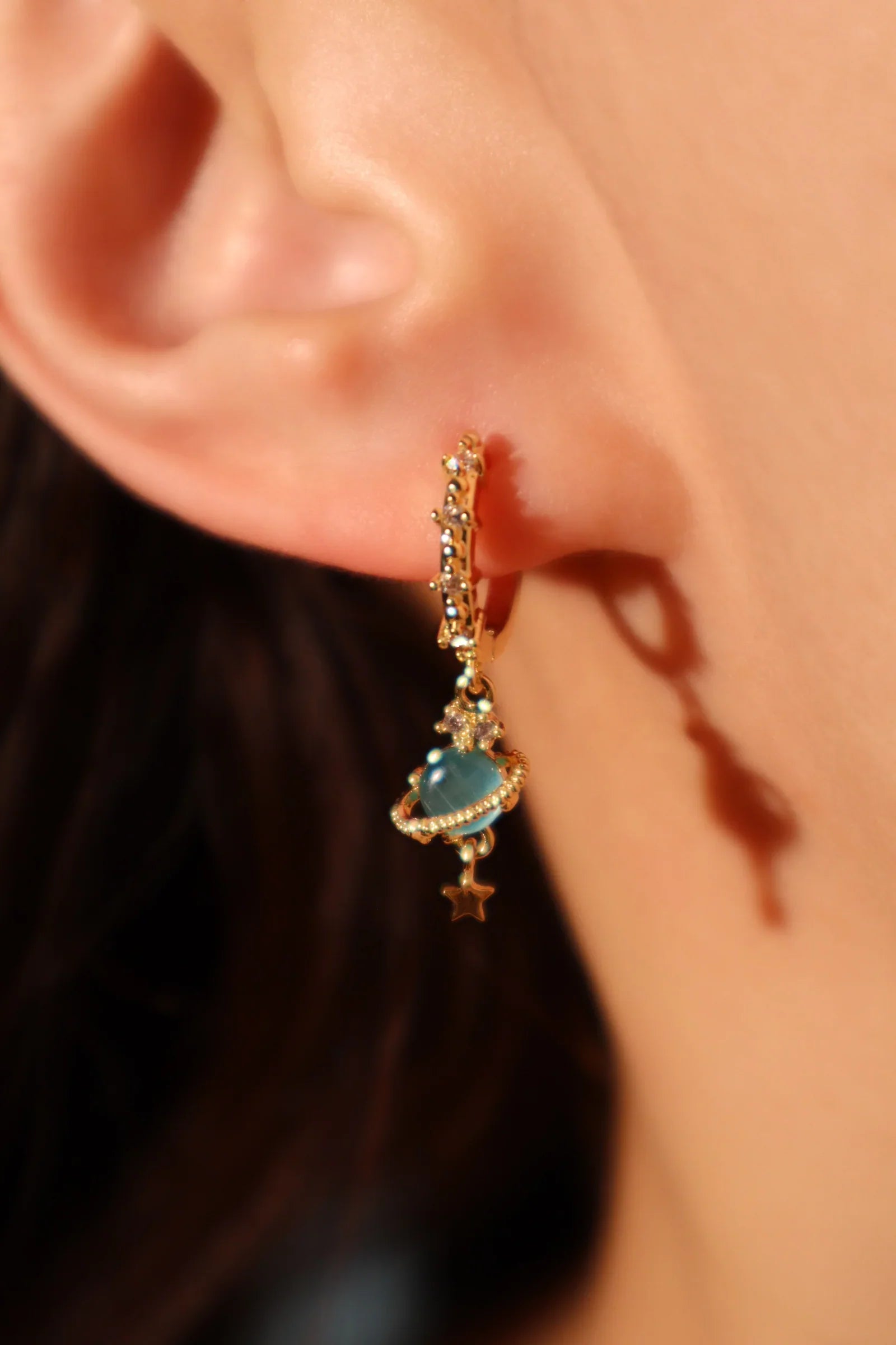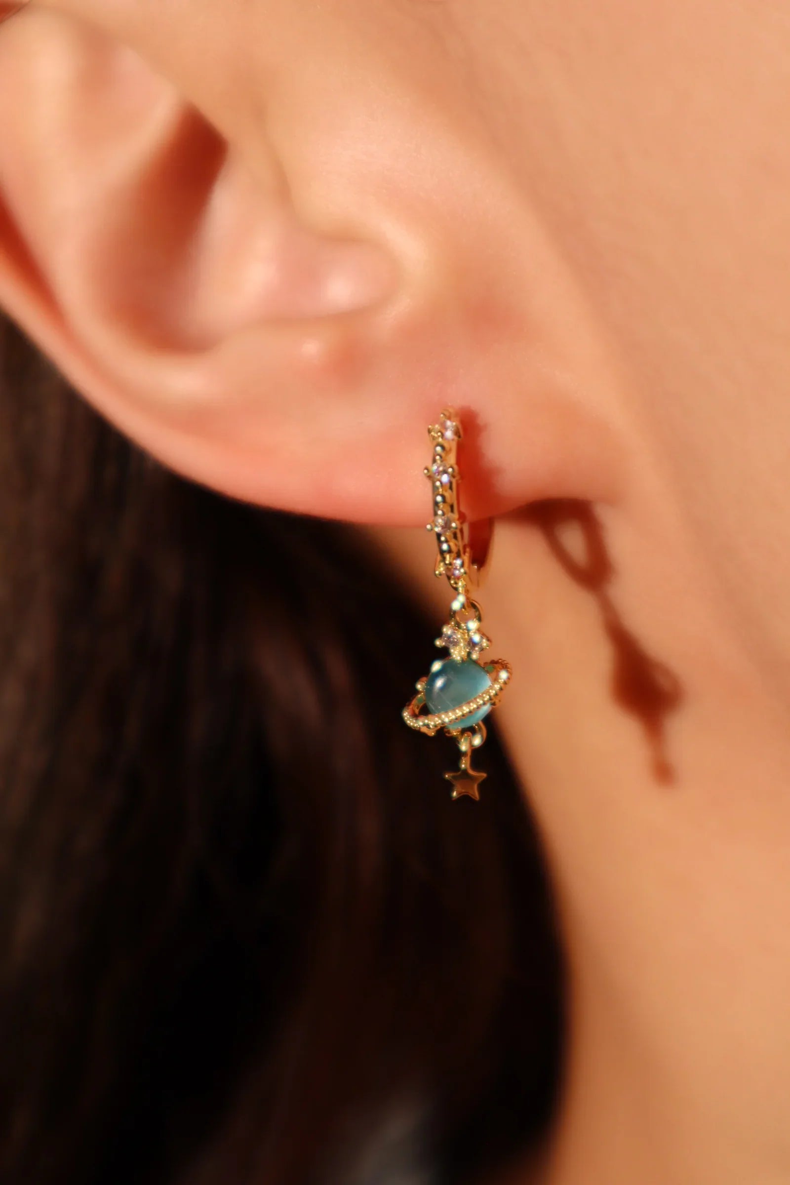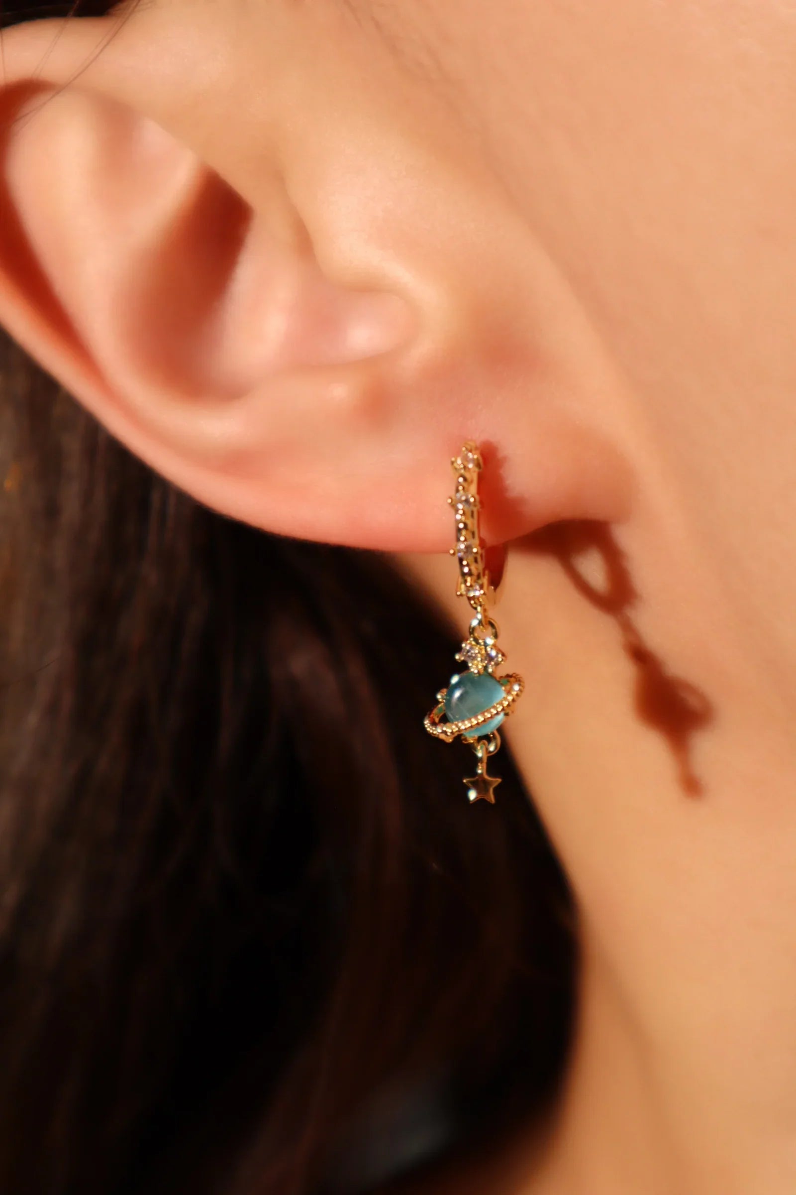 Altın Satürn Yıldız Küpe