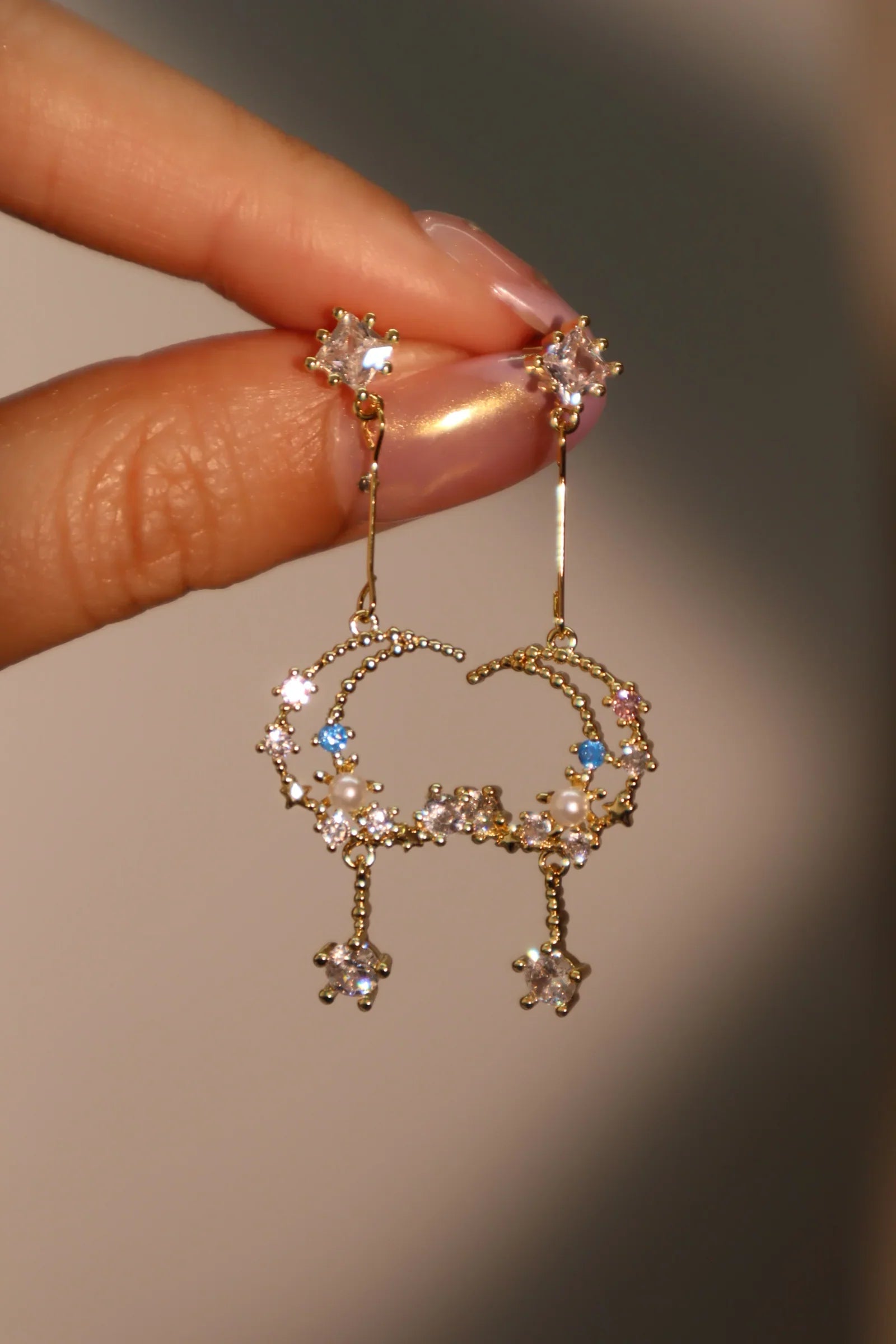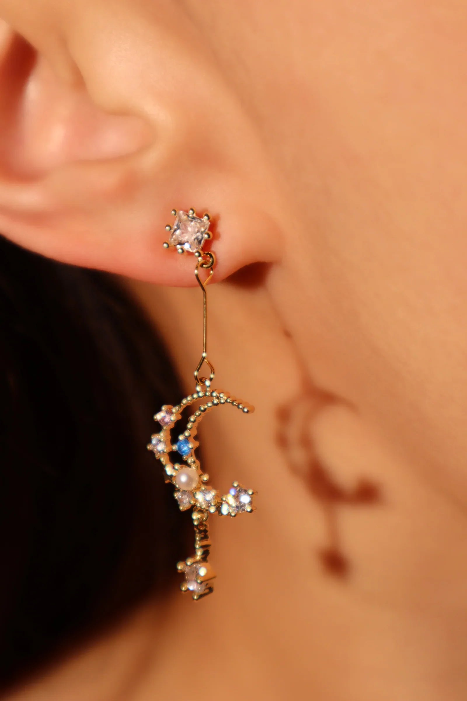 🌟 14K Gerçek Altın Kaplama Ay Işıltısı Küpelerimiz büyüleyici bir güzelliğe sahip. Bu küpe çifti, melekler kadar parlaklık ve ışıltıya sahip yüksek kaliteli zirkon elmaslarla süslenmiştir. Ne giyeceğinize karar veremediğinizde, bu küpeleri kıyafetinizle eşleştirerek kurtarıcınız olmalarına izin verin!