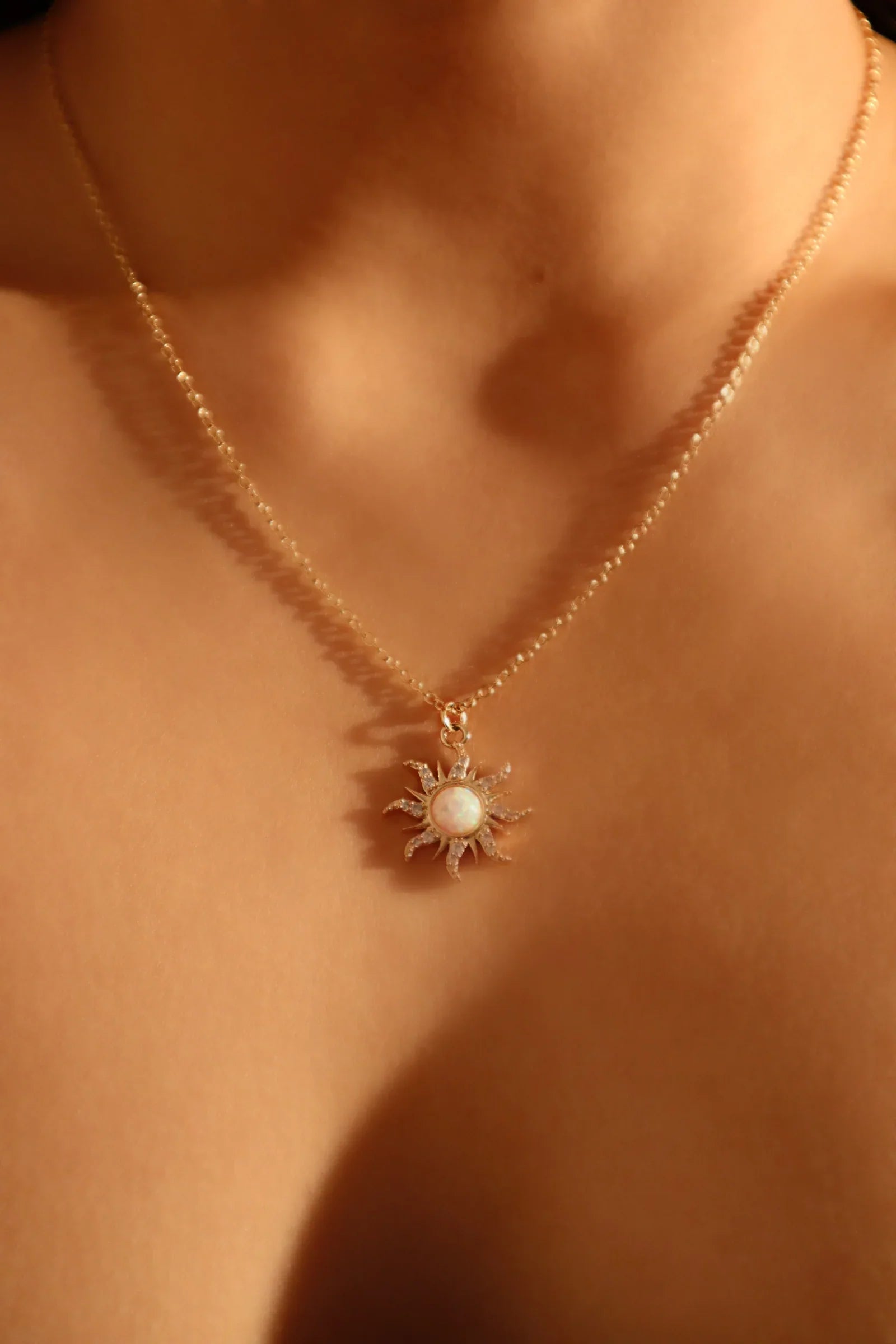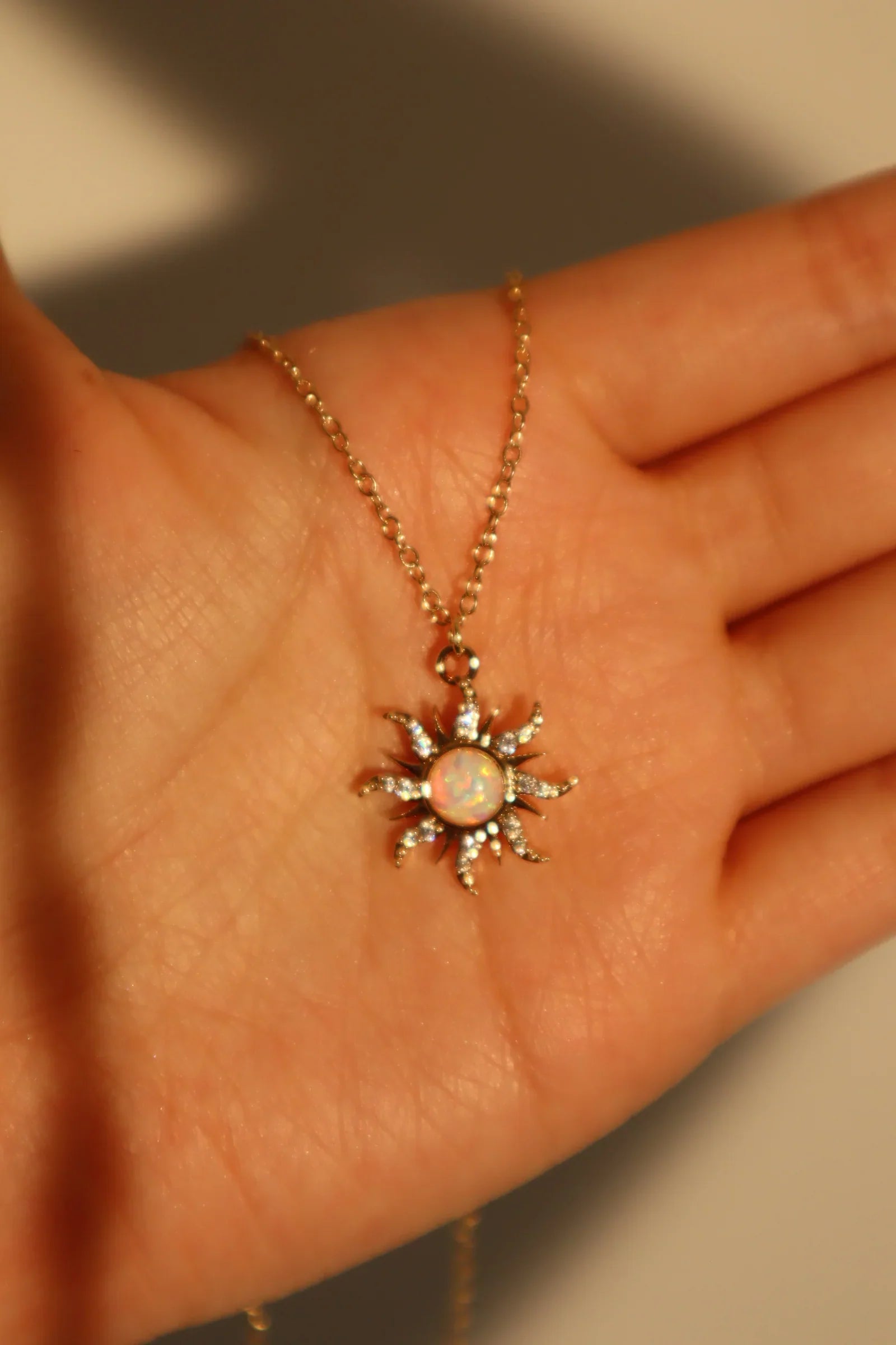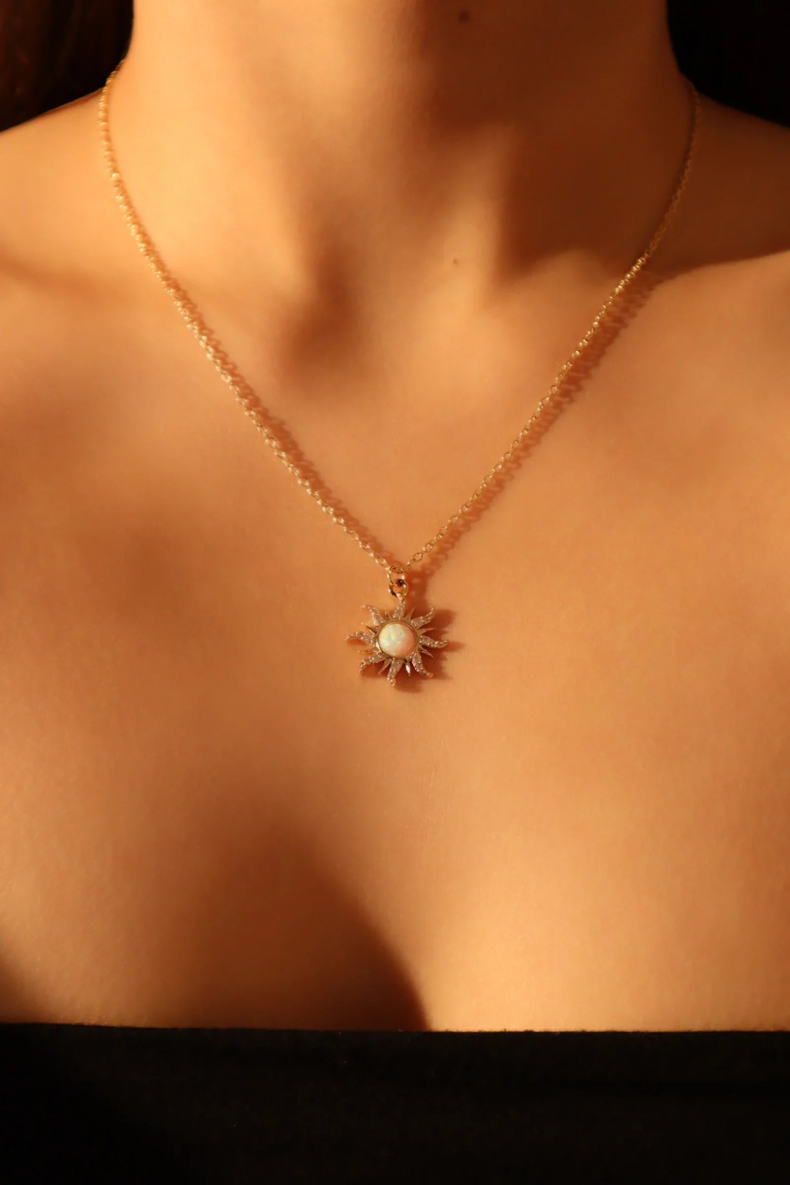 🌟 Matlığa veda edin ve 14K Gerçek Altın Kaplama Beyaz Opal Güneş Kolyemizle göz kamaştırın. Doğru aydınlatma altında, zirkon elmaslar kıyafetinize parlak bir dokunuş ekliyor. Bu benzersiz kolye, kıyafetinizi öne çıkarır ve hem ona hem de ona harika bir hediye olur.