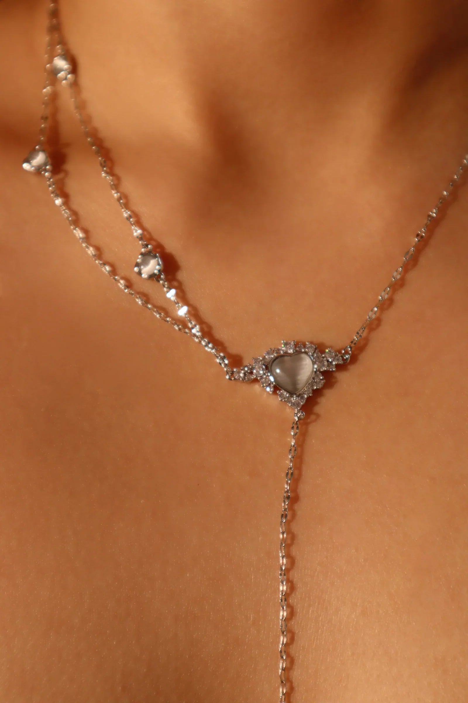 Beyaz Opal Kalp Kolye