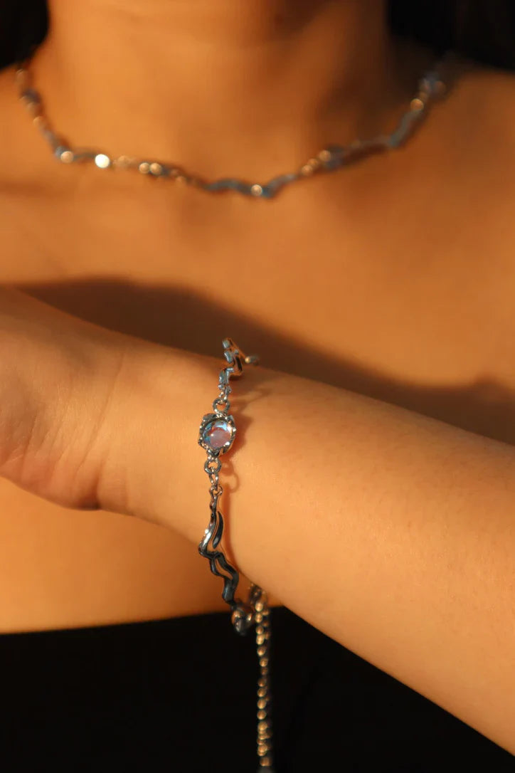 🌟 Gümüş kaplama bileklik, paslanmaz çelik zincirle birleştirilmiş ve yüksek kaliteli Zirkon Aytaşları ile süslenmiştir. Şıklığı ve zarafetiyle her kıyafetinizle uyum sağlar ve ışıltınızı artırır.