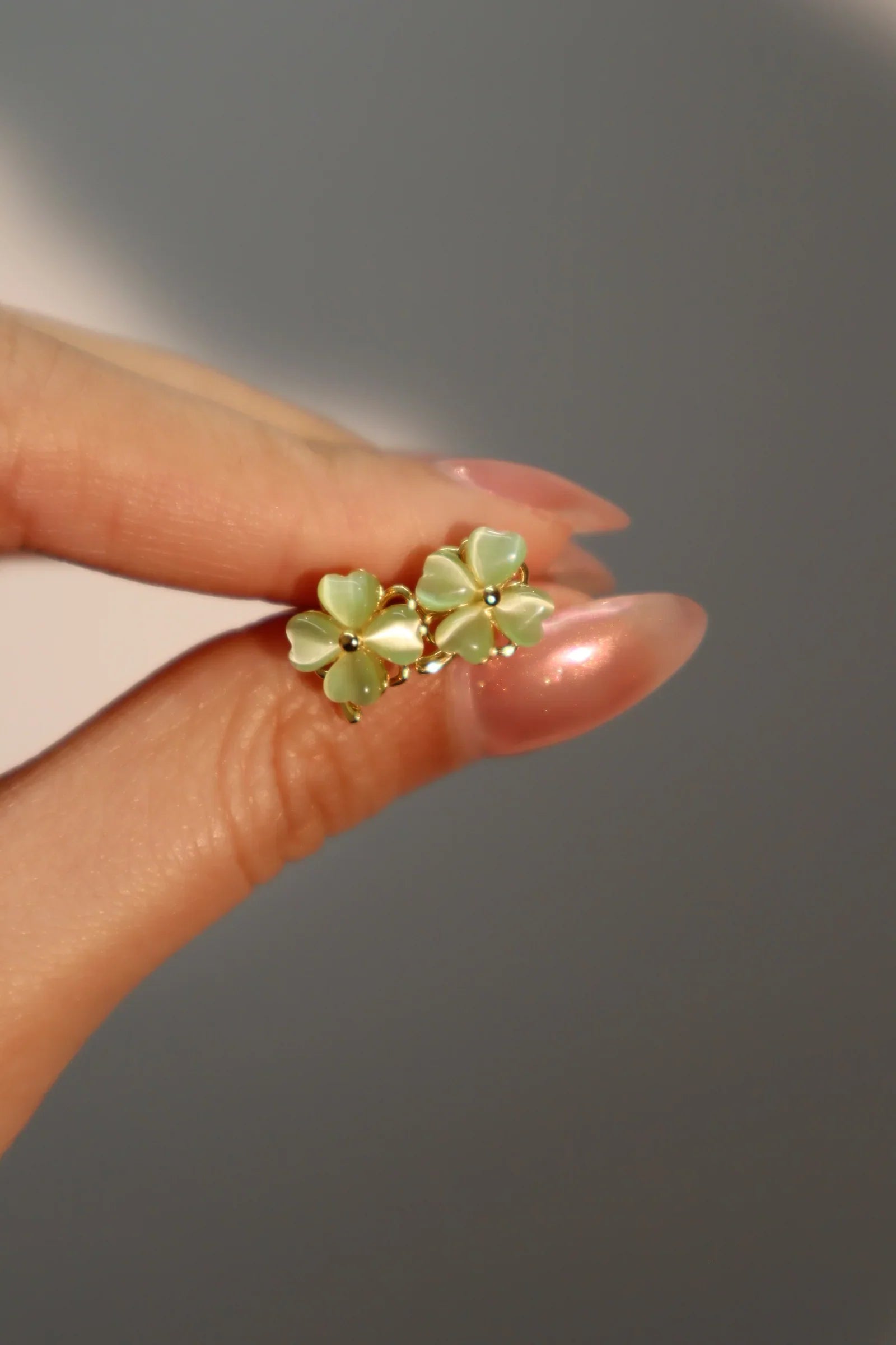 🌟 14K Gerçek Altın Kaplama Yeşim Yonca Küpelerimiz büyüleyici bir güzelliğe sahip. Bu küpe çifti, melekler kadar parlaklık ve ışıltıya sahip yüksek kaliteli zirkon yeşil taşlarla süslenmiştir ve yonca şekli dönebilir özelliktedir. Ne giyeceğinize karar veremediğinizde, bu küpeleri kıyafetinizle eşleştirerek kurtarıcınız olmalarına izin verin!