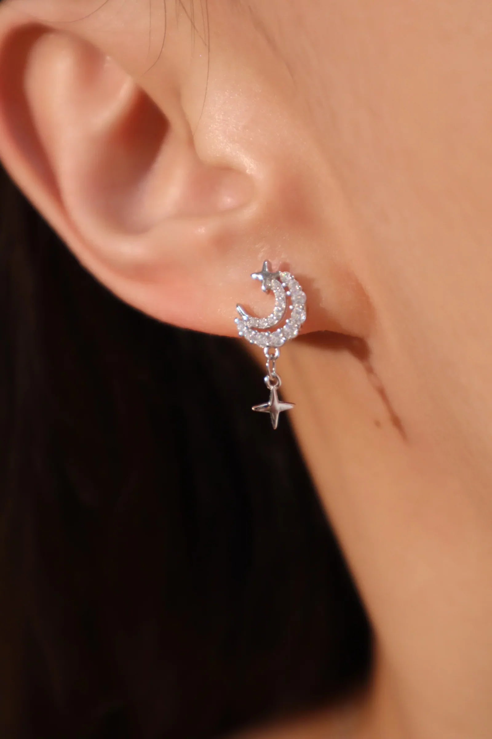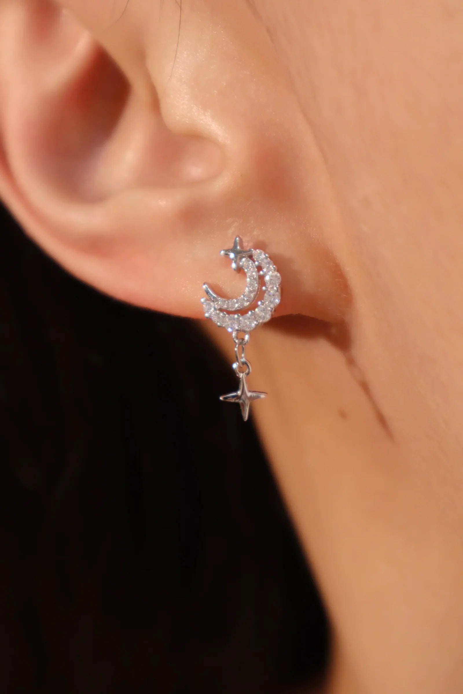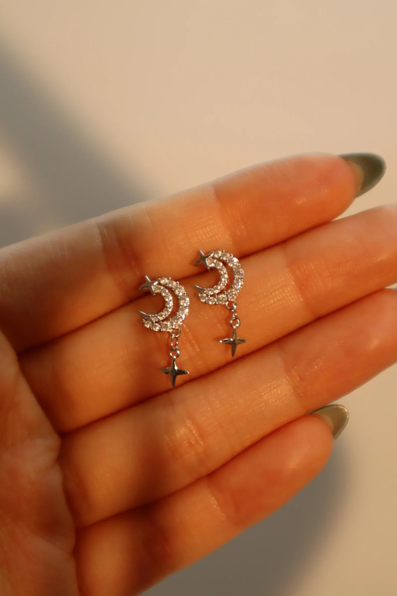 🌟 925 Ayar Gümüş Elmas Ay Yıldız Küpelerimiz büyüleyici bir güzelliğe sahip. Bu küpeler, melekler kadar parlaklık ve ışıltıya sahip kaliteli zirkon elmaslarla süslenmiştir. Ne giyeceğinize karar veremediğinizde, bu küpeleri diğer küpelerinizle eşleştirerek kurtarıcınız olmalarına izin verin!