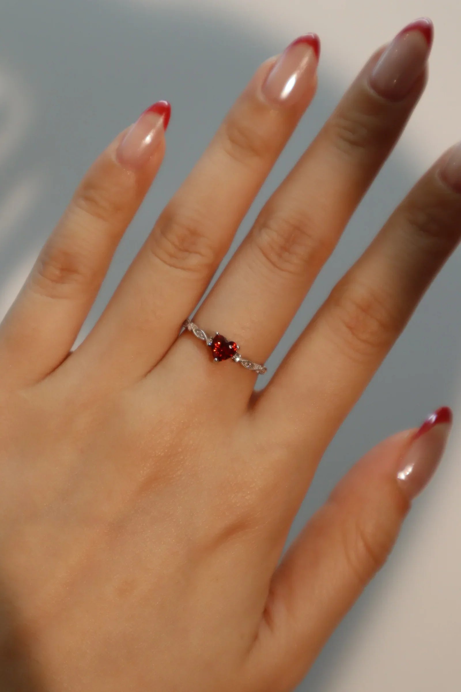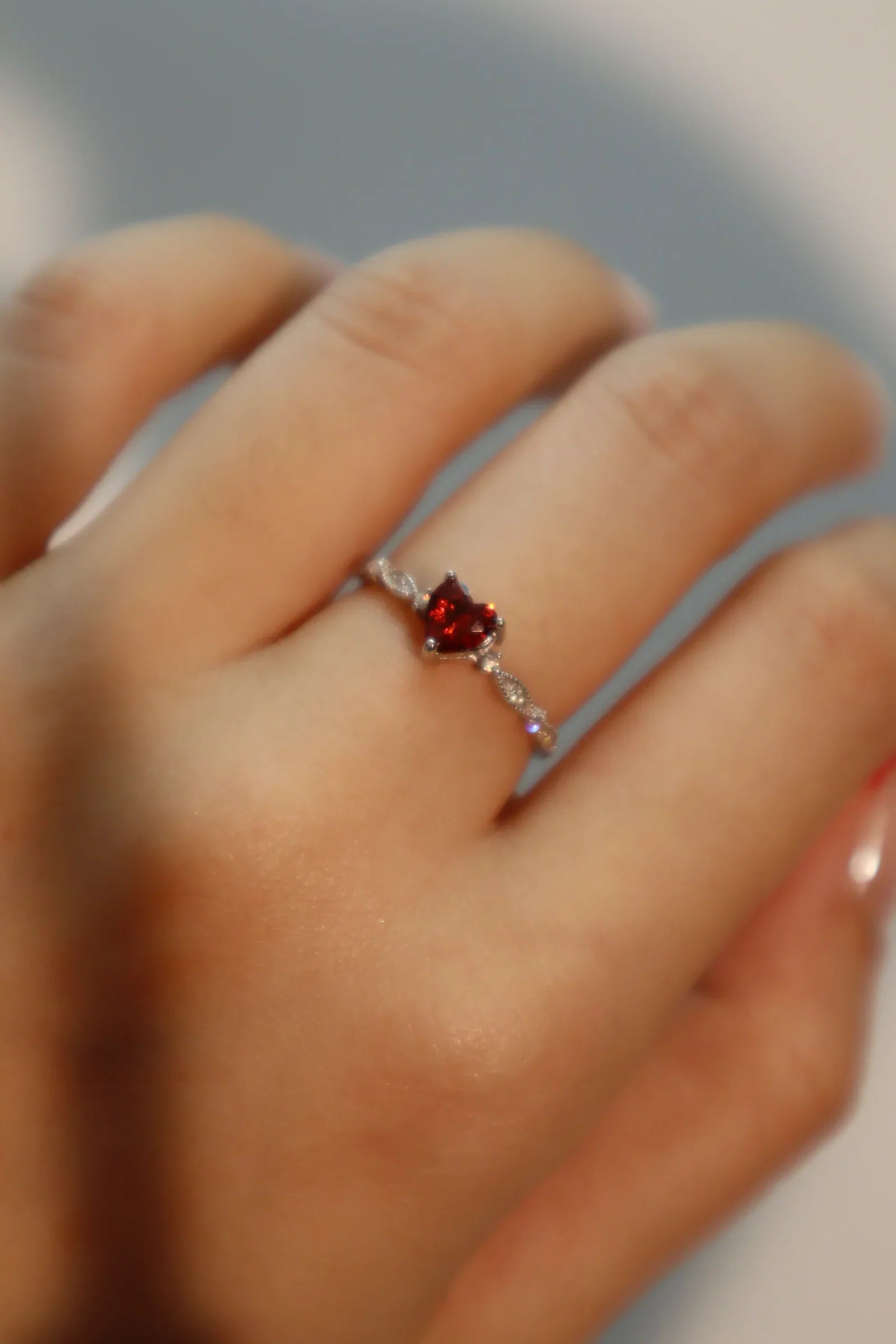 Gümüş Kırmızı Taşlı Kalp Yüzük