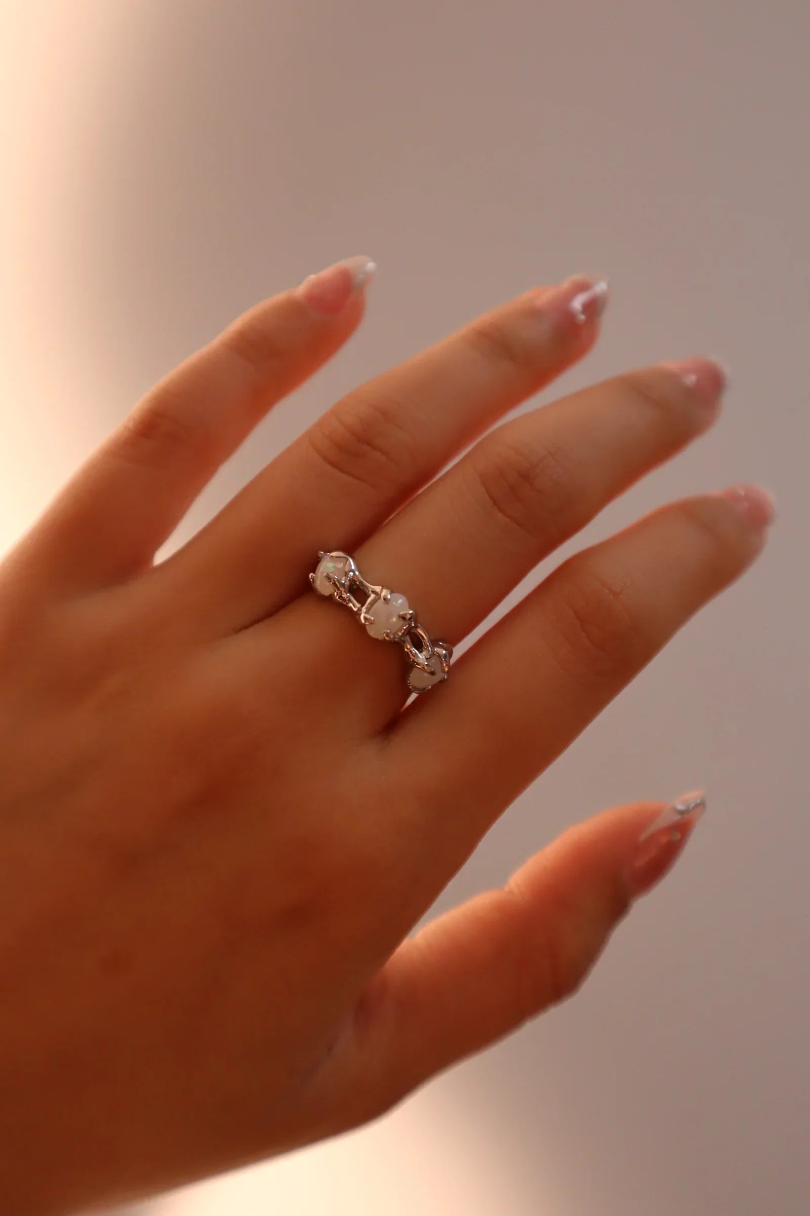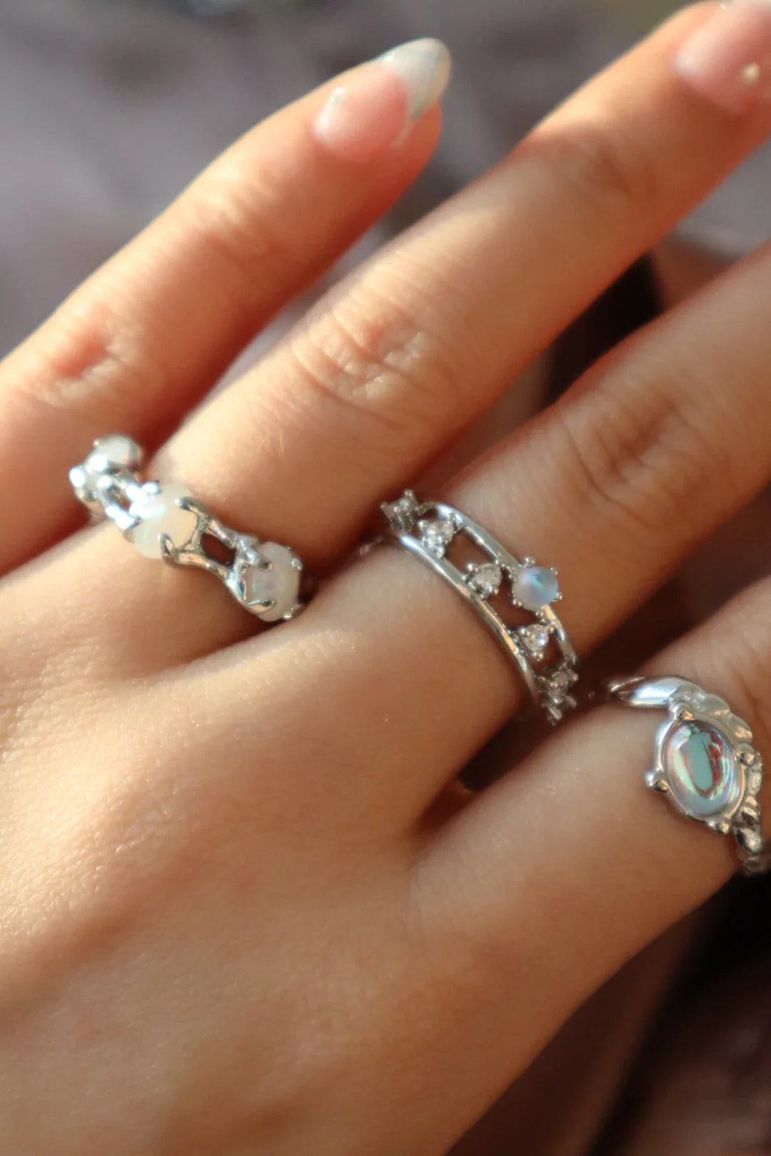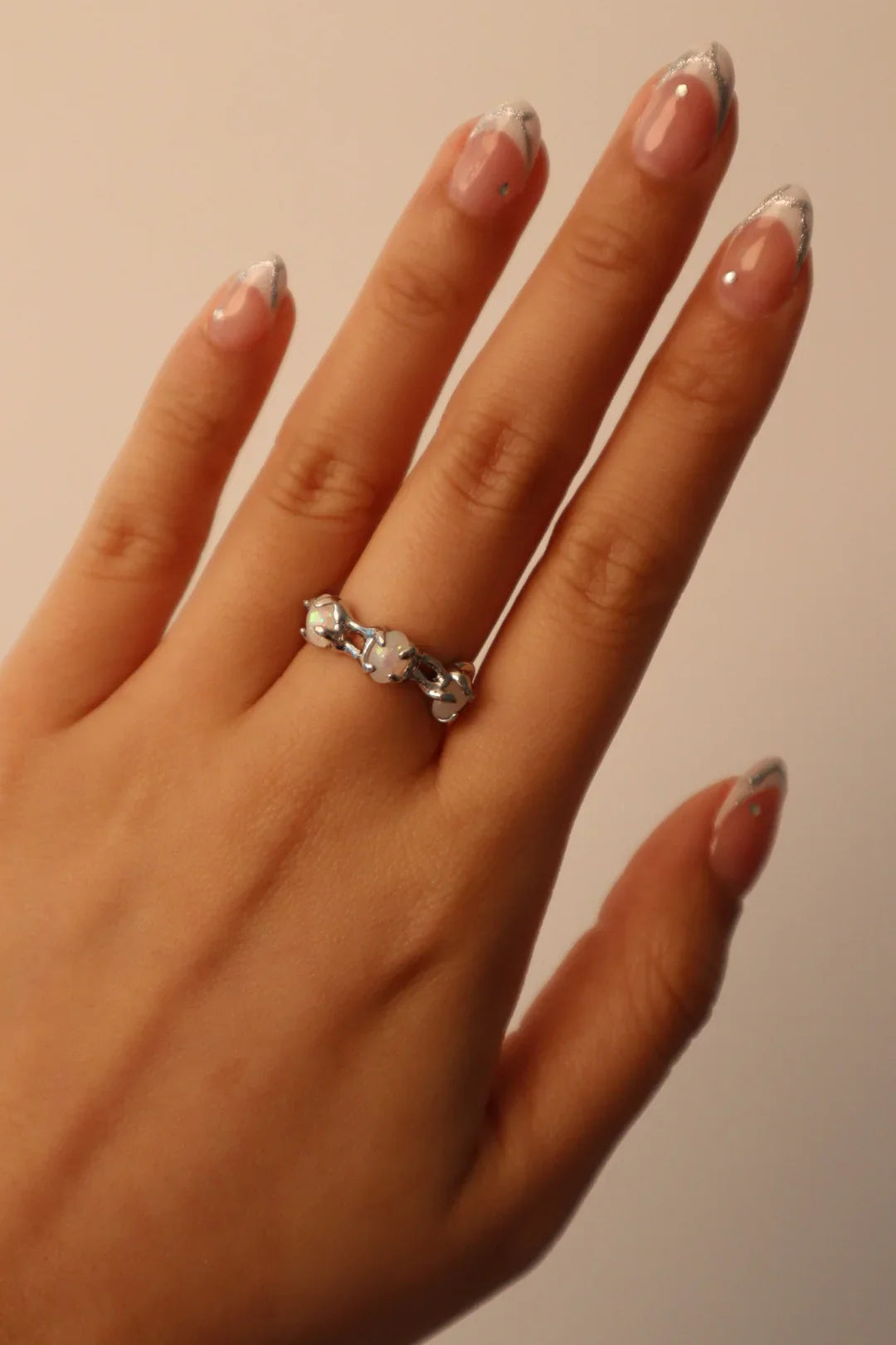 Tarzınızı sevimli opal taşlı yüzüğümüzle canlandırın! Su geçirmez gümüş bant üzerinde üç adet opal taş bulunan bu yüzük, ihtiyacınız olduğunda doğru parıltıyı sağlayarak özel ışıltısıyla herhangi bir gece için mükemmel bir aksesuar haline gelir. Bunu yaparken bir de tırnak fotoğrafı çekmeyi unutmayın! Bu yüzük, en iyi arkadaşınıza veya sevdiğiniz birine yıllarca değer verecekleri harika bir hediye de olacaktır.