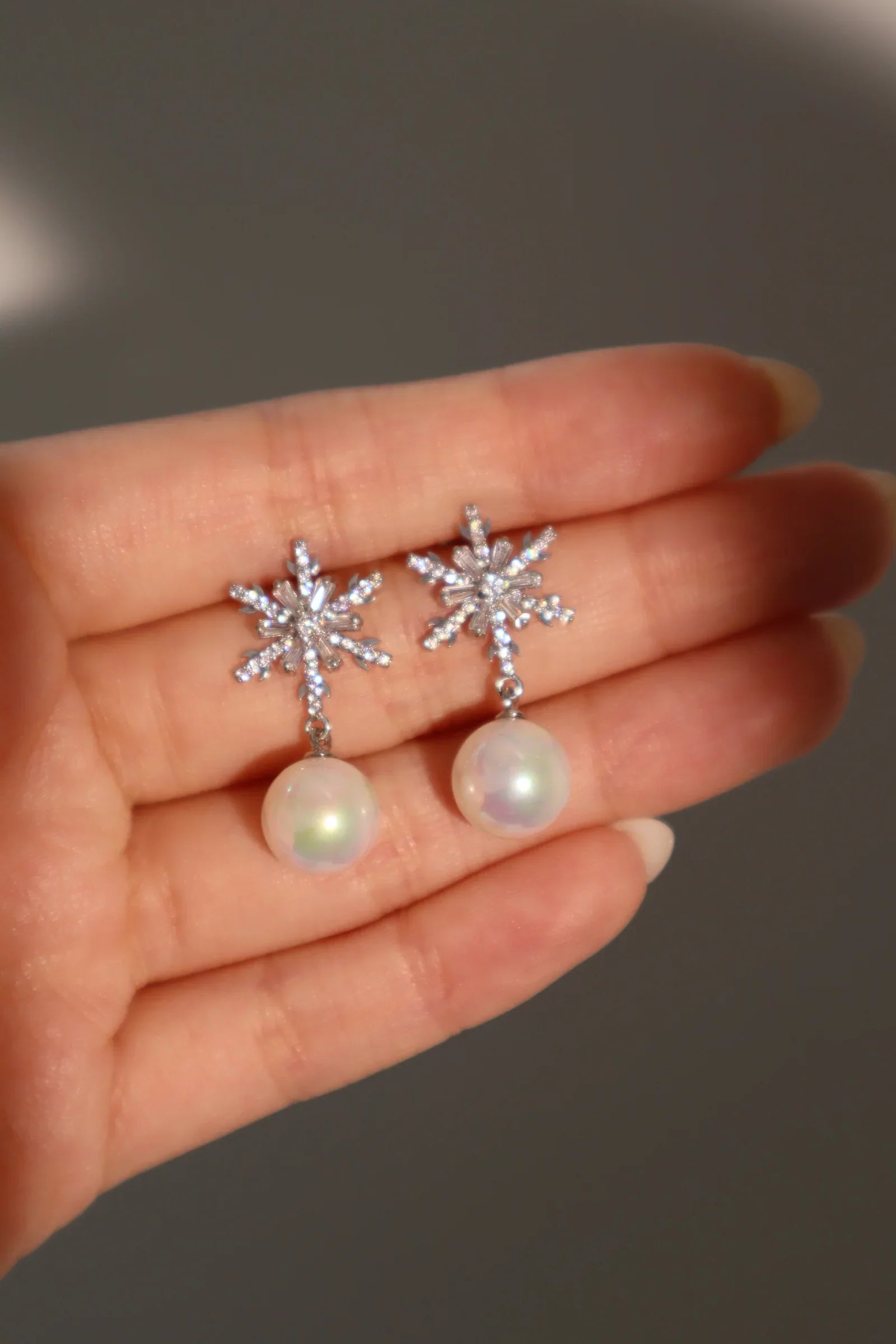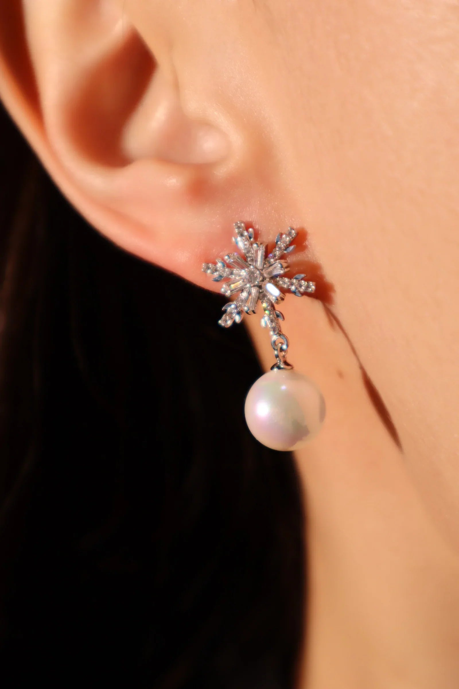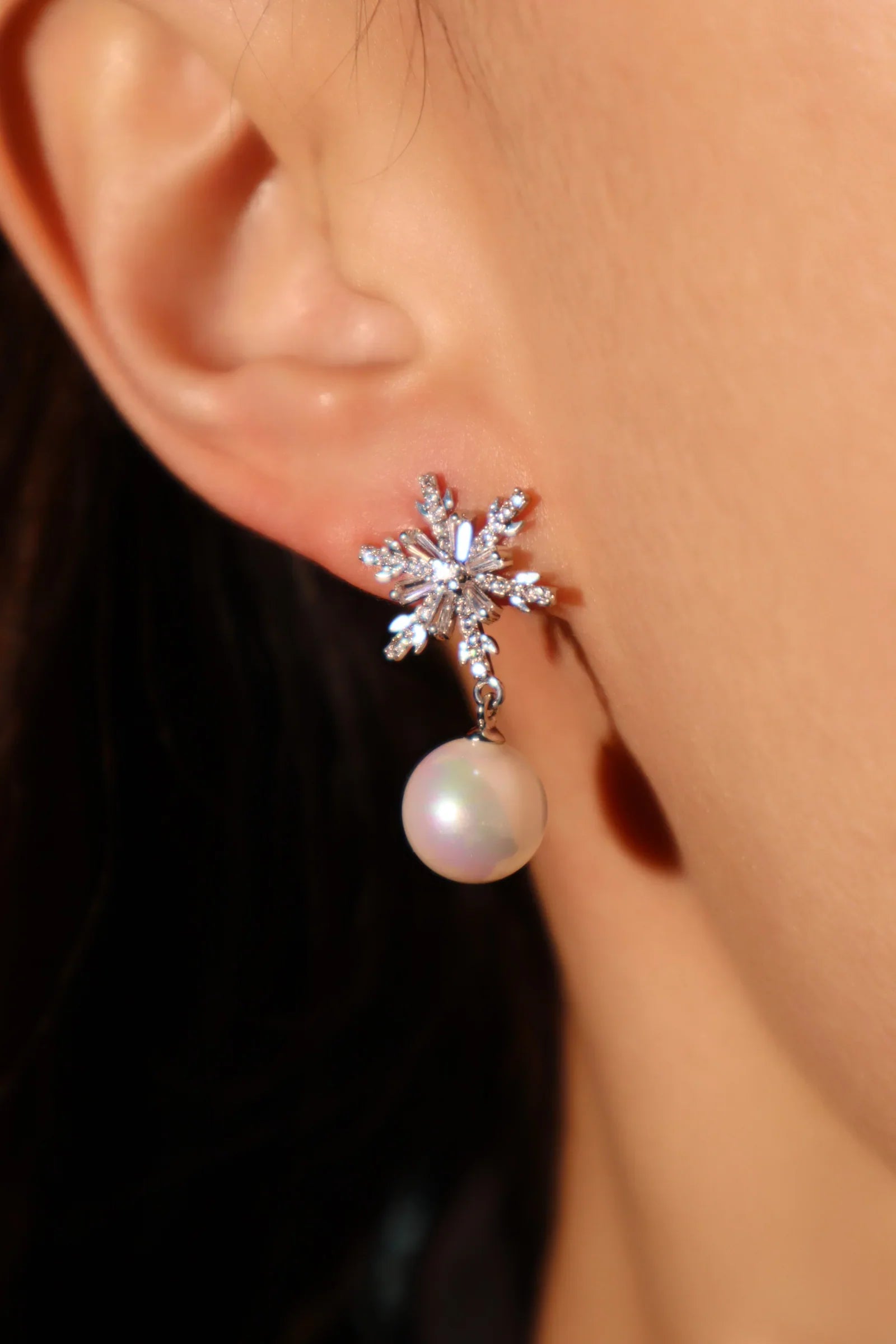 🌟 Platin Kaplama Kar Tanesi İnci Küpelerimiz büyüleyici bir güzelliğe sahip. Bu küpe çifti, melekler kadar parlaklık ve ışıltıya sahip yüksek kaliteli zirkon elmaslar ve kabuk incileri ile süslenmiştir. Ne giyeceğinize karar veremediğinizde, bu küpeleri kıyafetinizle eşleştirerek kurtarıcınız olmalarına izin verin!