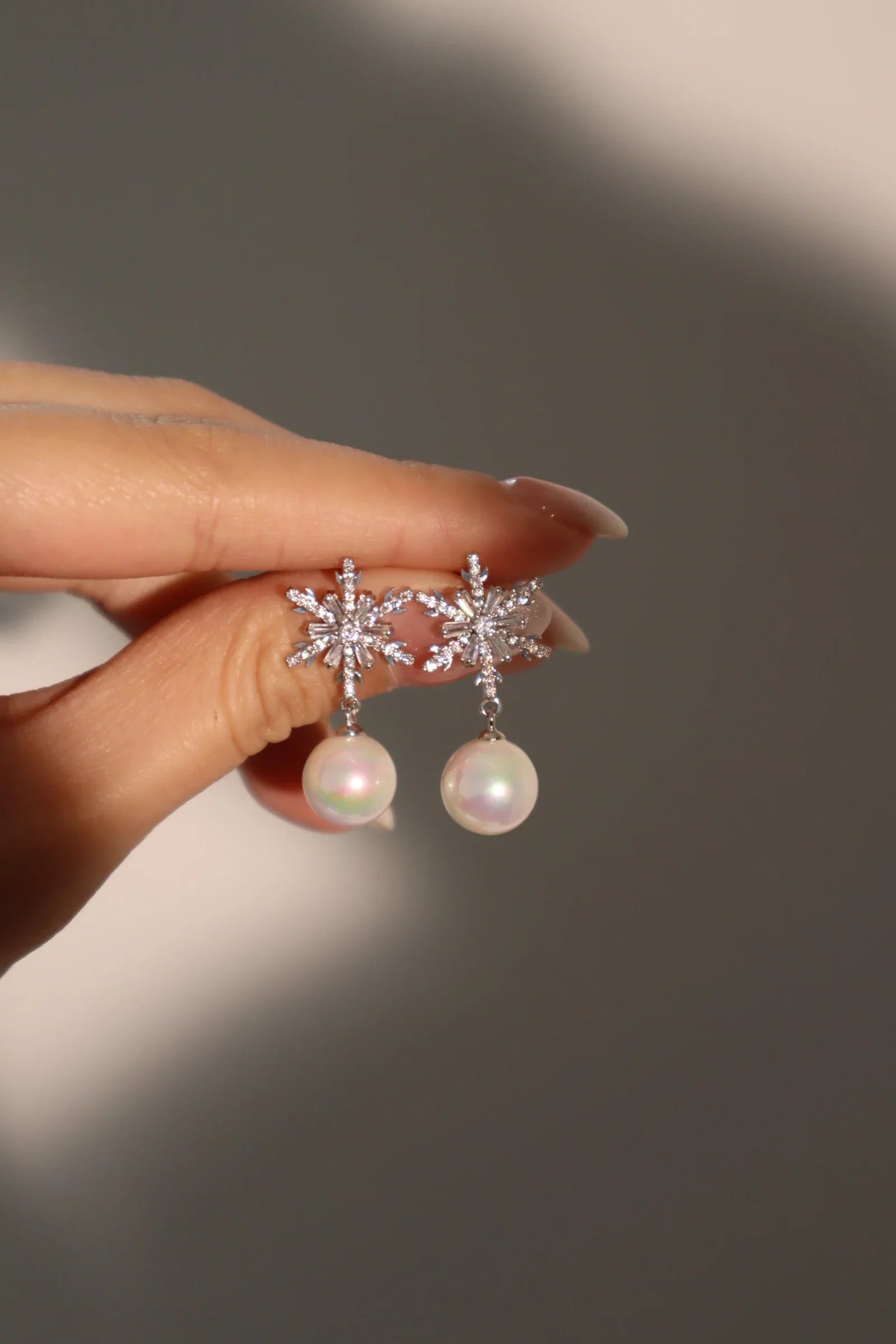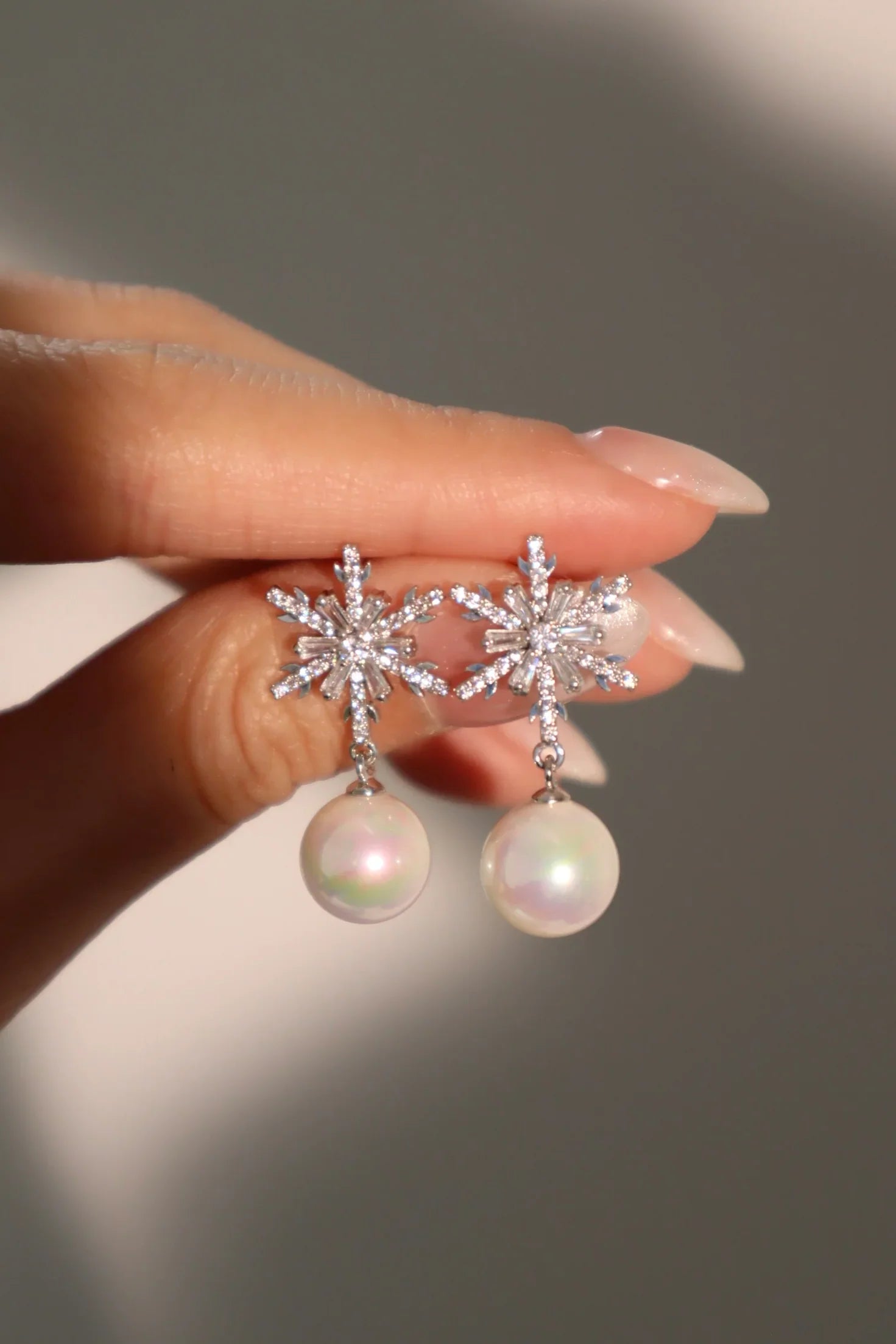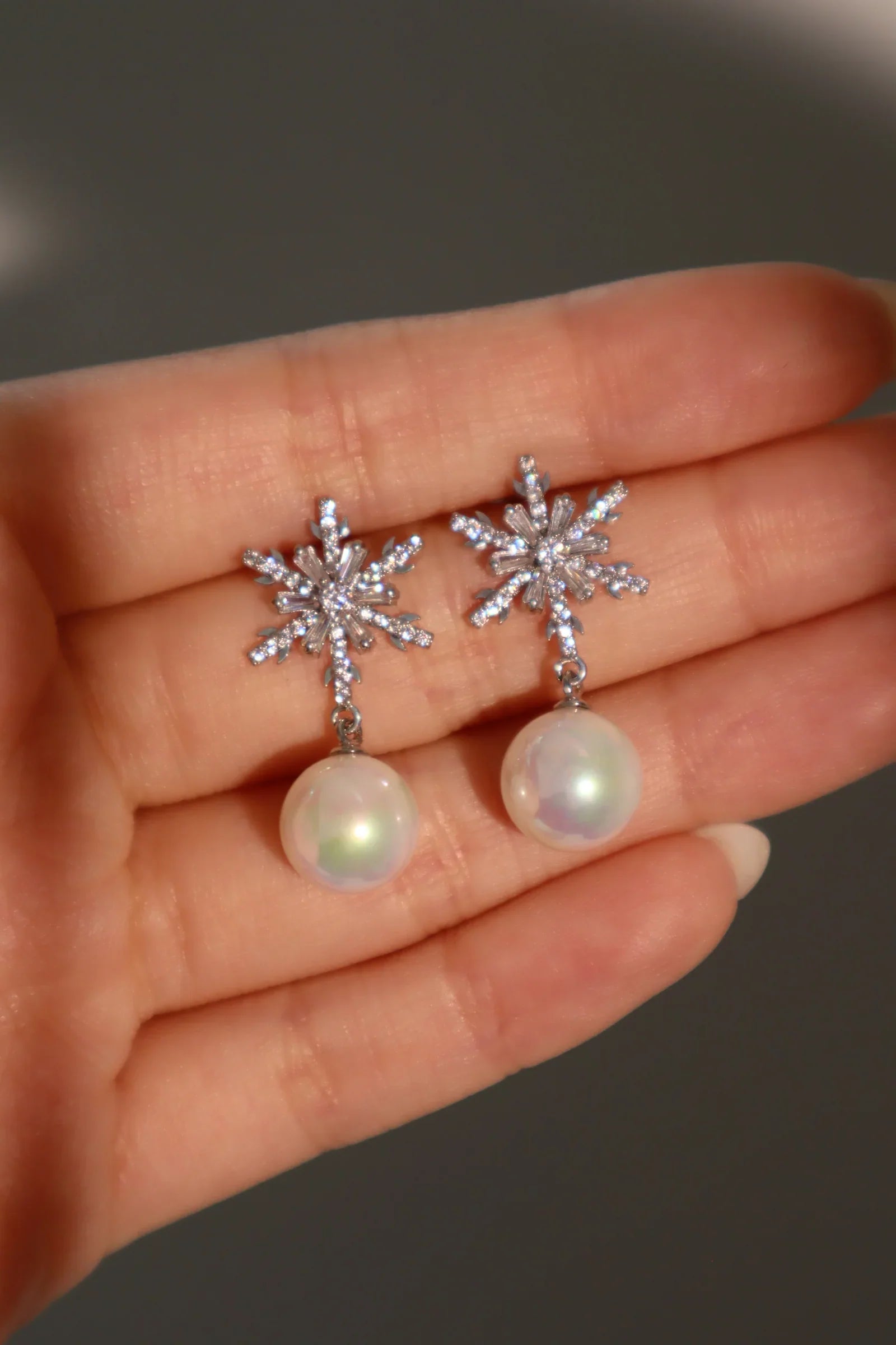 🌟 Platin Kaplama Kar Tanesi İnci Küpelerimiz büyüleyici bir güzelliğe sahip. Bu küpe çifti, melekler kadar parlaklık ve ışıltıya sahip yüksek kaliteli zirkon elmaslar ve kabuk incileri ile süslenmiştir. Ne giyeceğinize karar veremediğinizde, bu küpeleri kıyafetinizle eşleştirerek kurtarıcınız olmalarına izin verin!