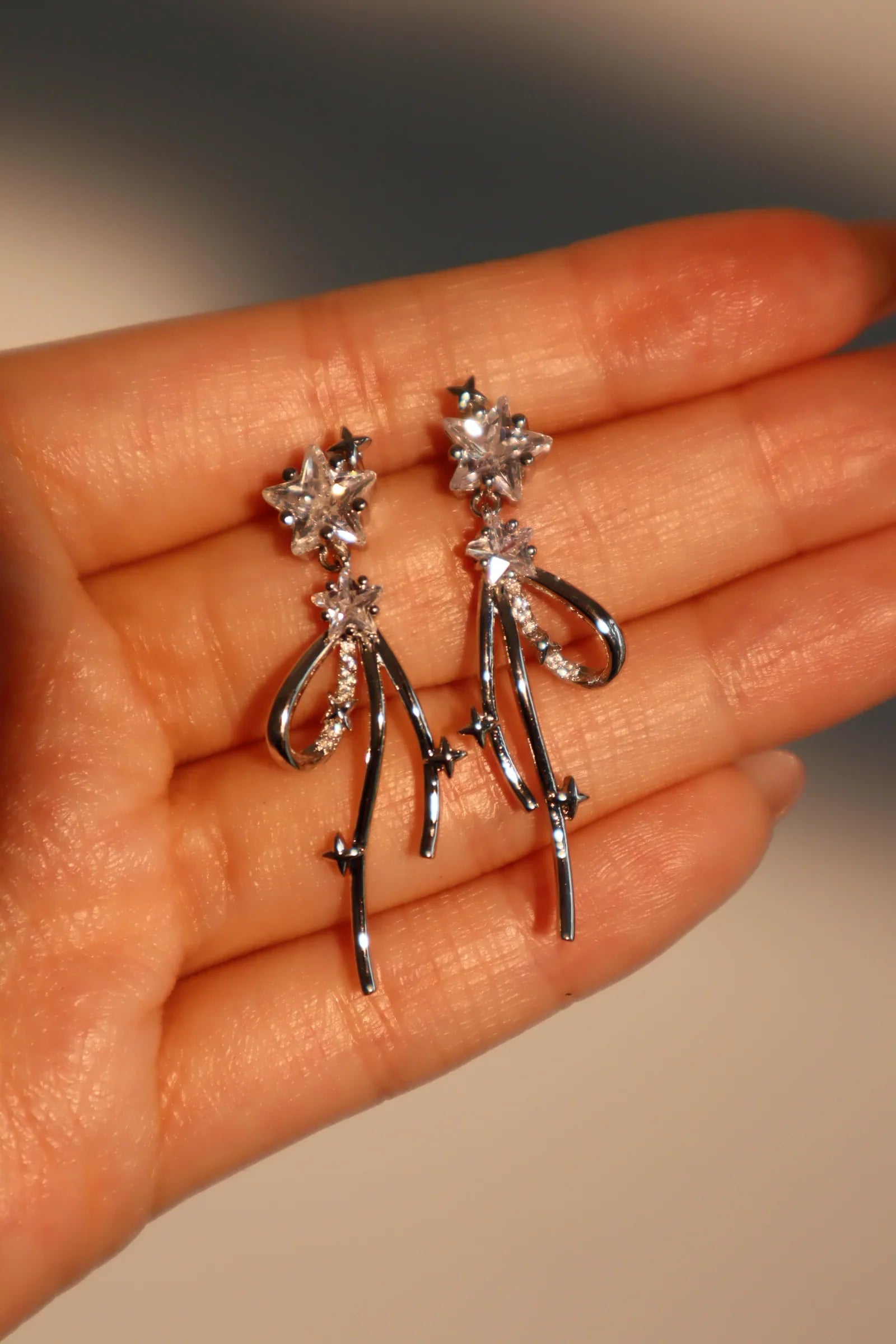 🌟 Platin Kaplama Kayan Yıldız Küpelerimiz büyüleyici bir güzelliğe sahip. Bu küpe çifti, melekler kadar parlaklık ve ışıltıya sahip yüksek kaliteli zirkon elmaslarla süslenmiştir. Ne giyeceğinize karar veremediğinizde, bu küpeleri kıyafetinizle eşleştirerek kurtarıcınız olmalarına izin verin!