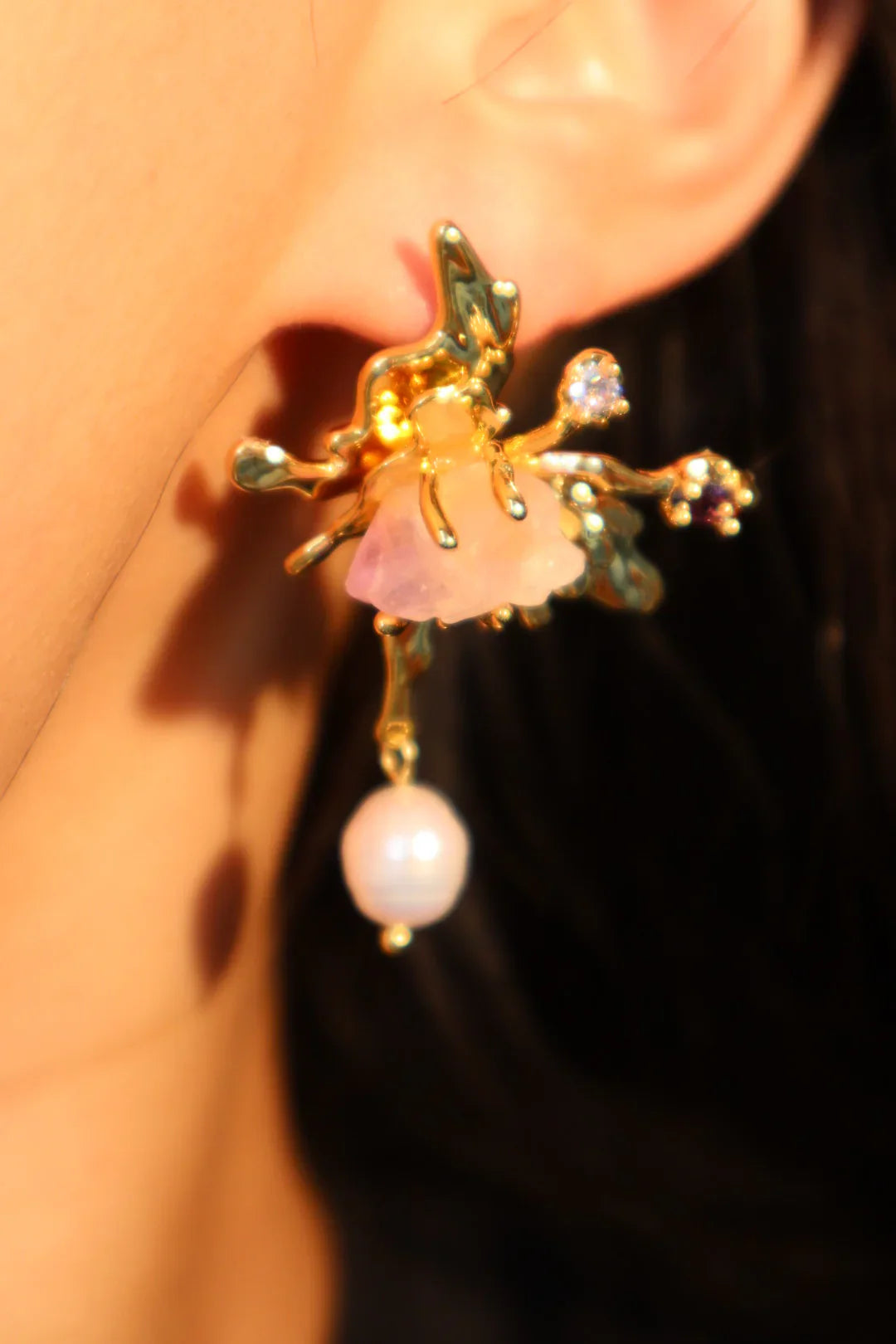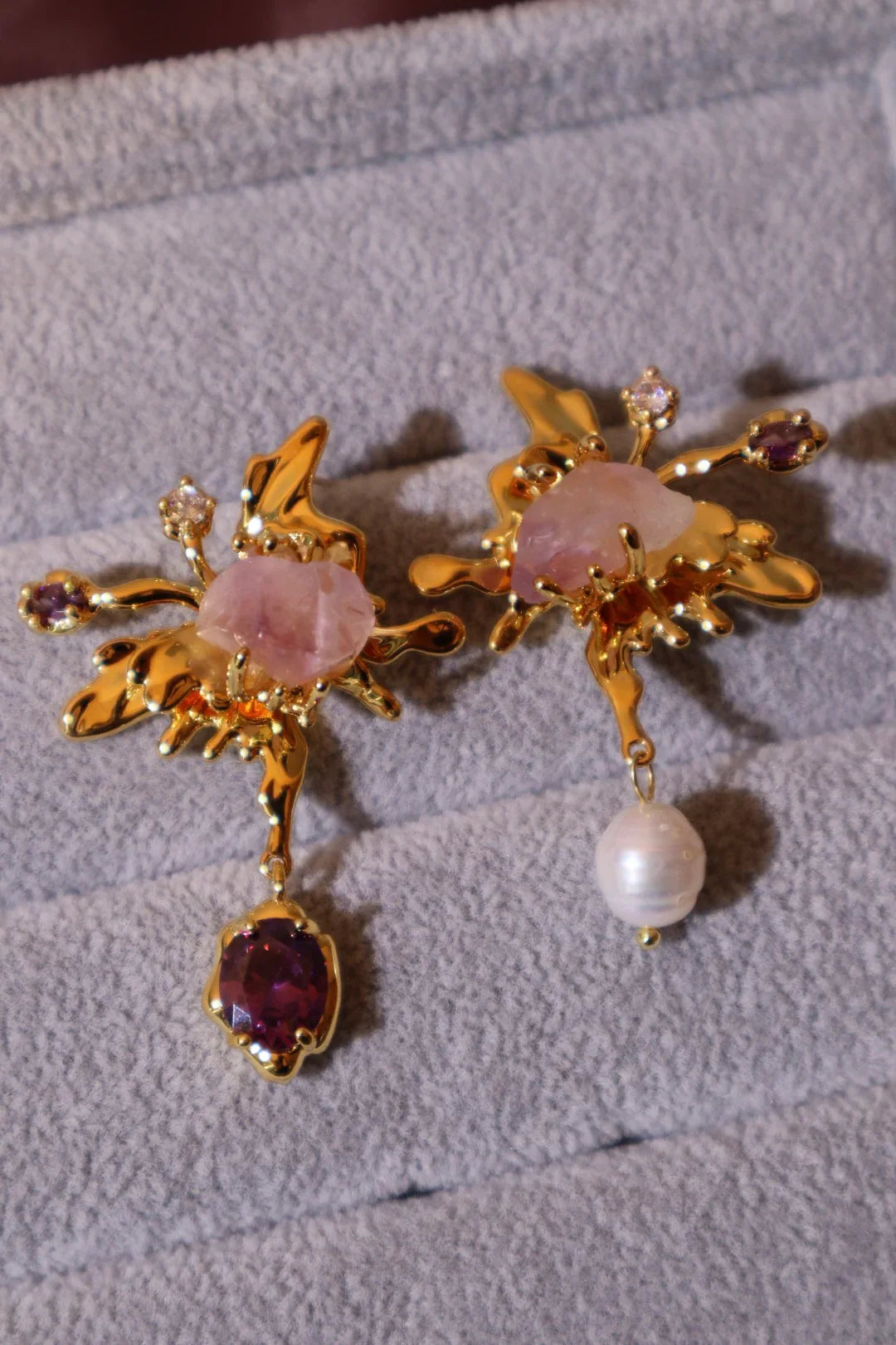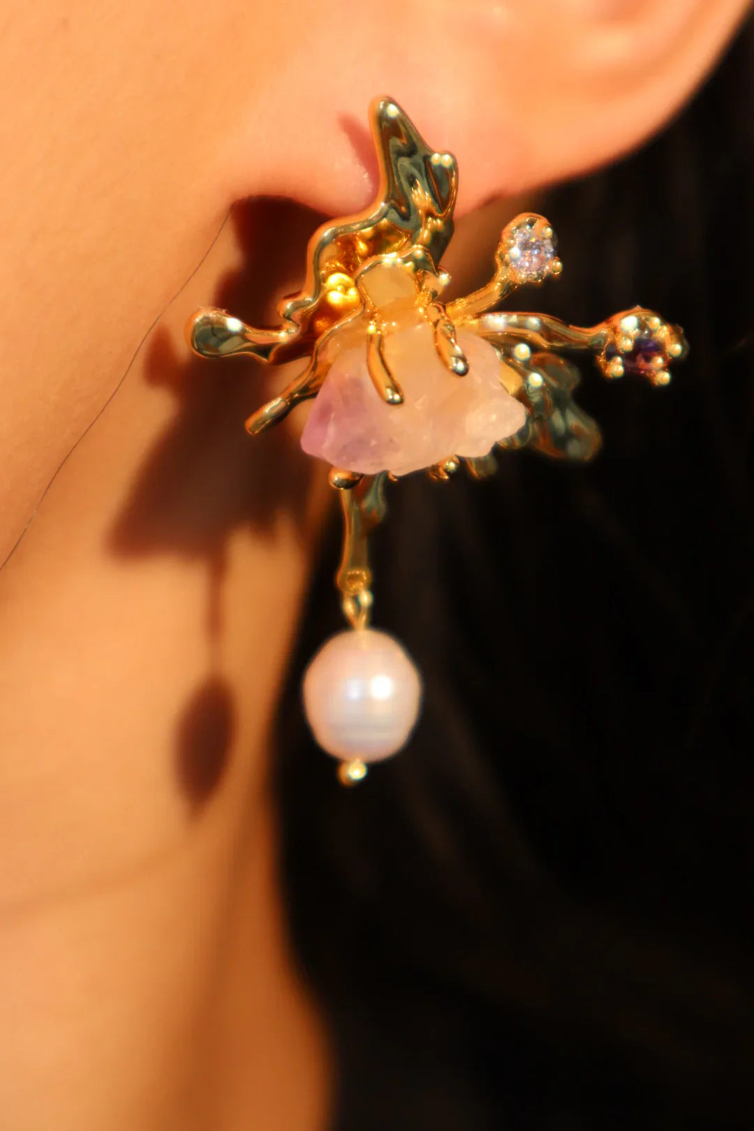 💎 18K gerçek altın kaplama + Doğal Ametist + Tatlısu incisi + Yüksek kaliteli mor zirkon taş
