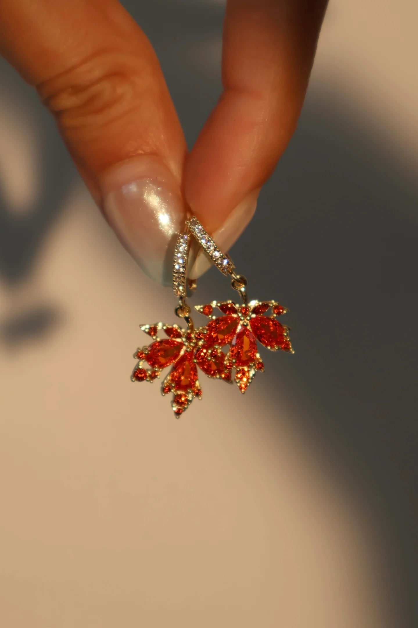 18 Ayar Altın Kaplama Kızıl Yaprak Küpelerimiz adeta büyülü bir havaya sahip. ✨ Bu küpeler, melekler gibi parıldayan ve ışıldayan yüksek kaliteli zirkonya kırmızı değerli taşlarla süslenmiştir. Bir görünüme karar veremediğinizde, bu küpeleri kıyafetinizle eşleştirerek kurtarıcınız yapabilirsiniz! 😇