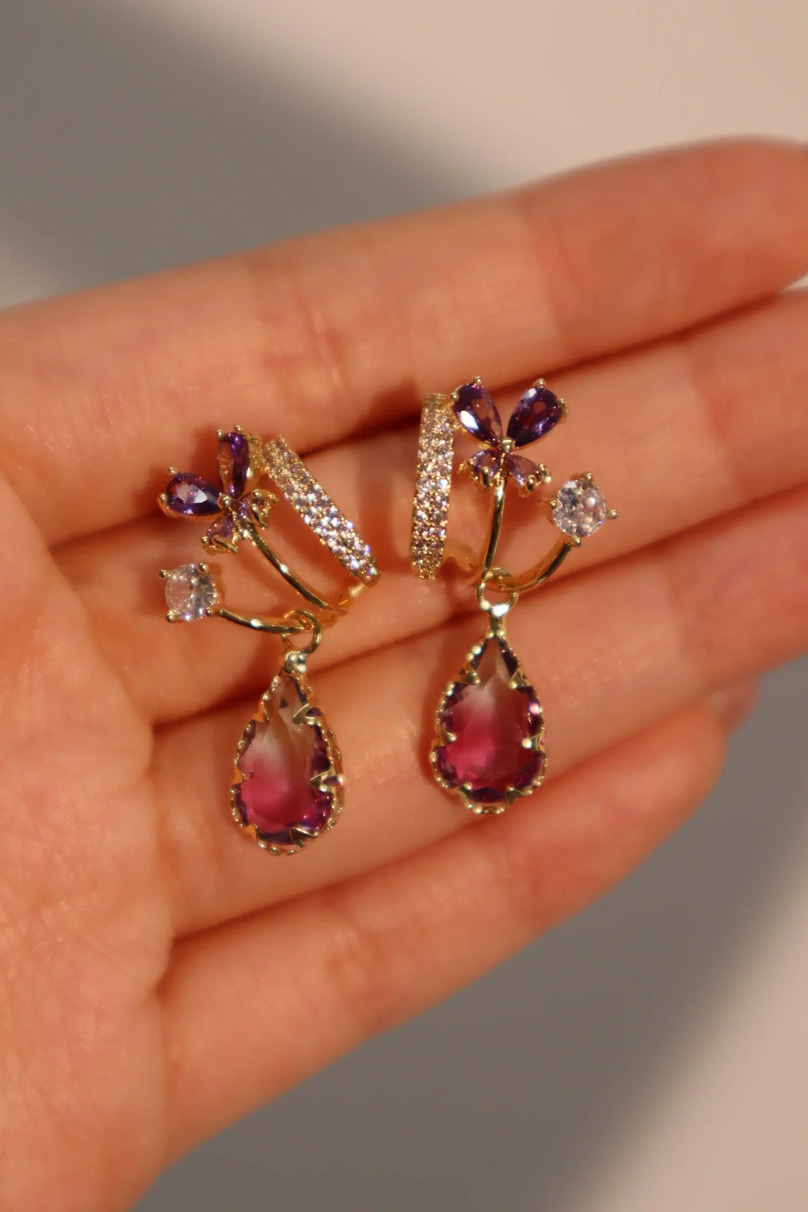 💜 14K gerçek altın kaplama + iyi kesilmiş zirkon elmaslar ve mor zirkon taşlar