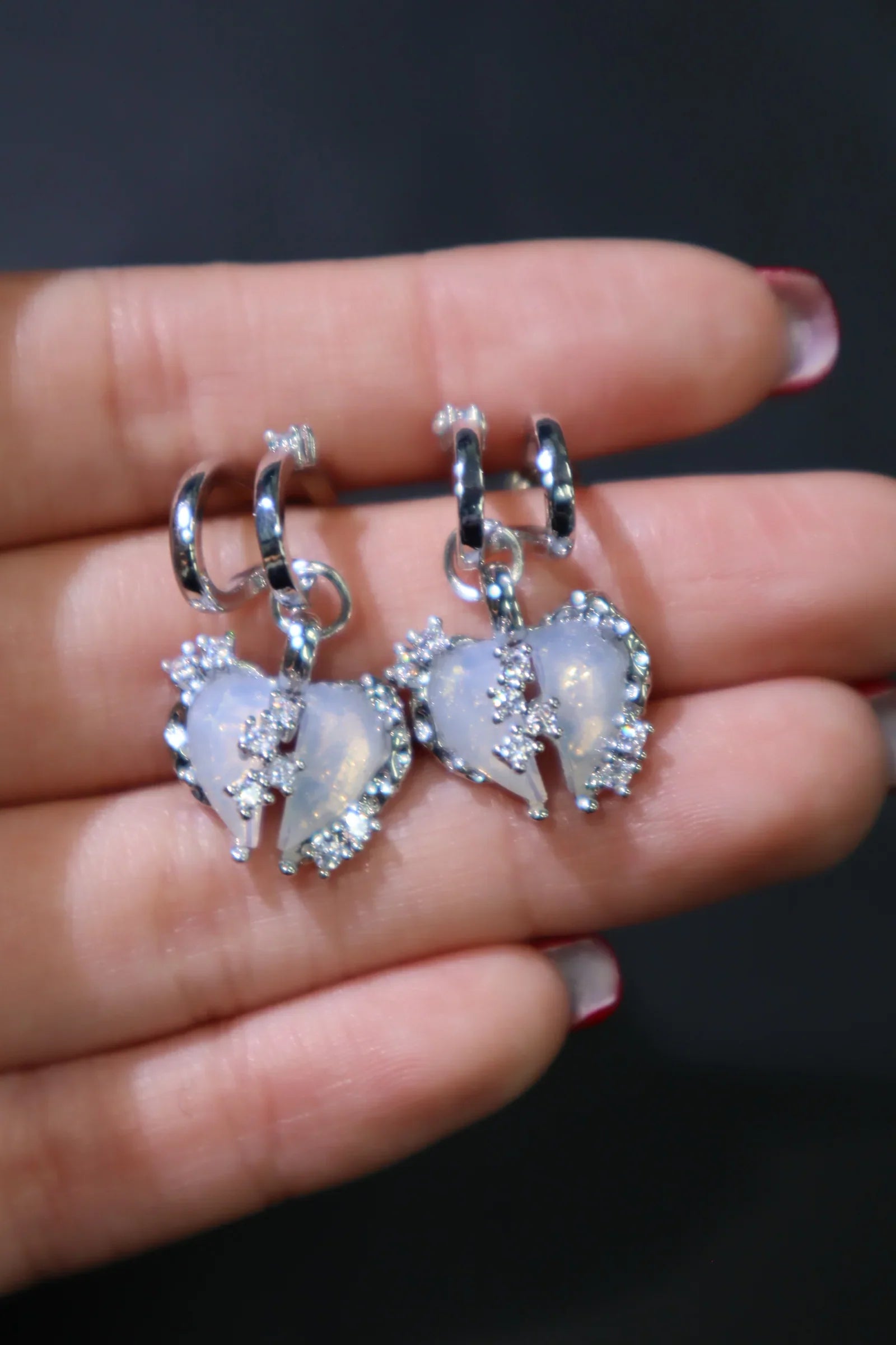 Mavi Opal Kalp Küpelerimiz oldukça hafiftir. Bu küpeler, meleksi bir şekilde parlayan ve ışıldayan kaliteli opal taşlarla süslenmiştir. Bir görünüme karar veremediğinizde, bu küpeler sizin kurtarıcınız olsun!