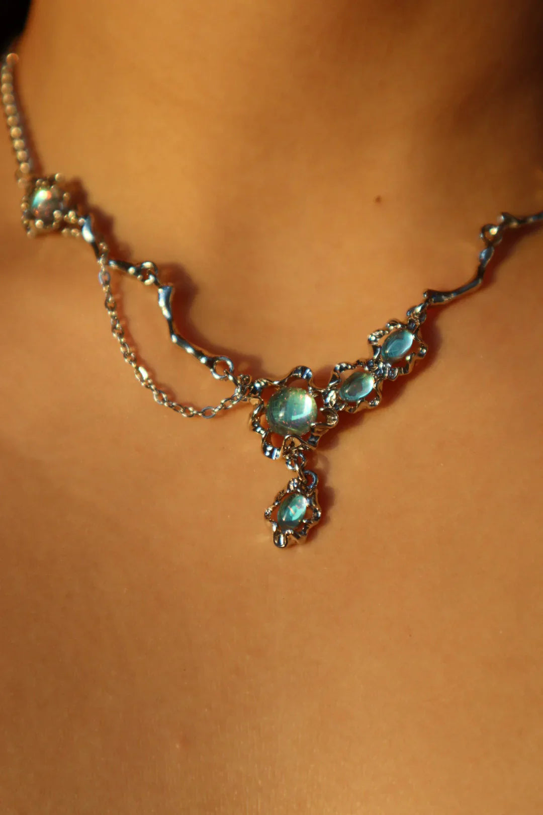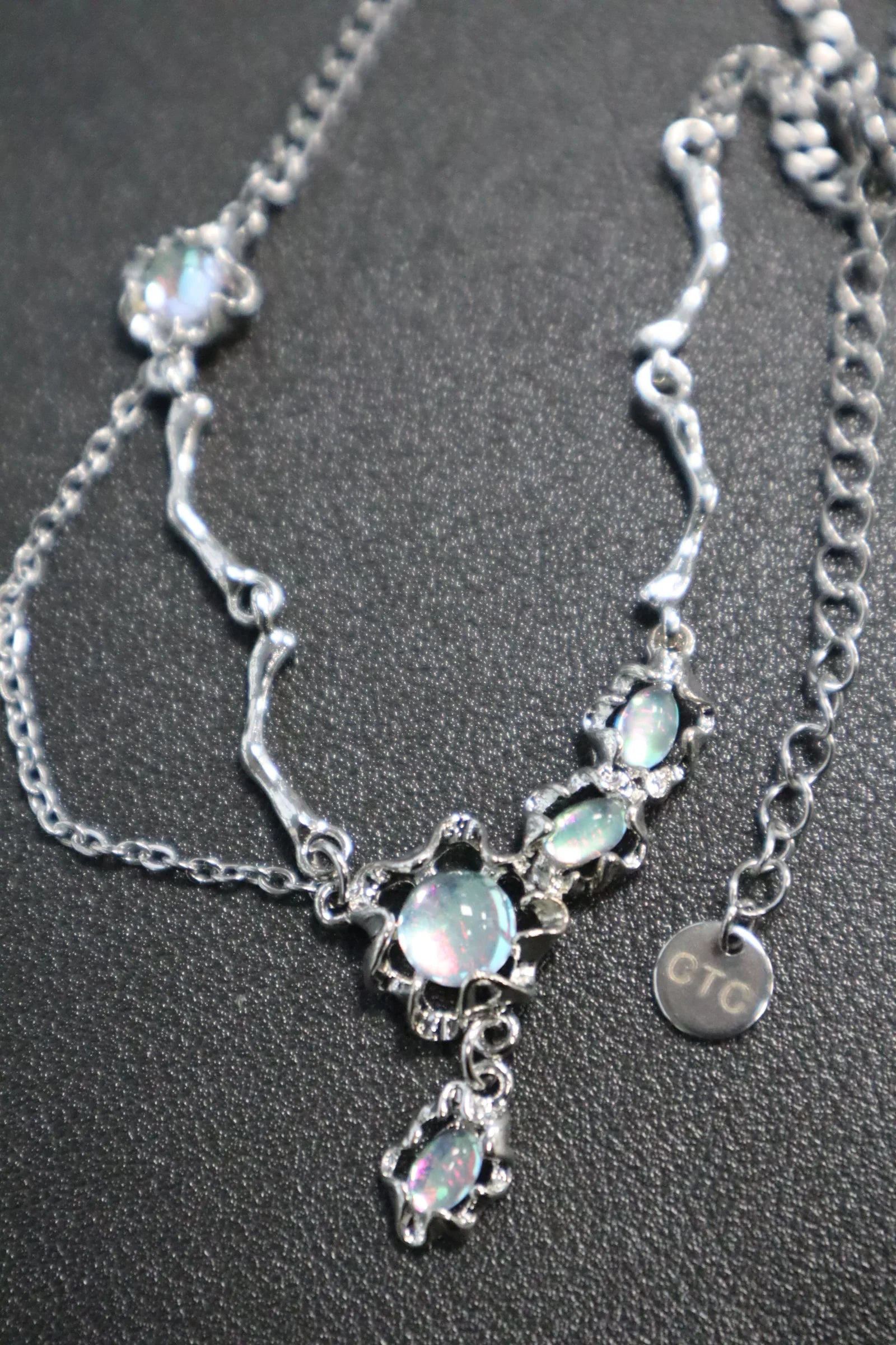 🔗 Paslanmaz çelikten yapılmış zincir + Yüksek kaliteli gümüş/platin kaplama kolye uçları + Zirkonya opal taşlar