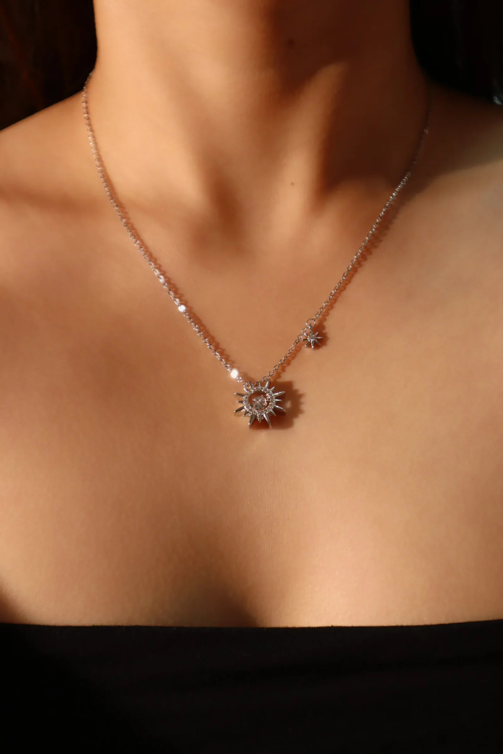 🌟 Matlığa veda edin ve Platin Kaplama Elmas Güneş Kolyemizle göz kamaştırın. Doğru aydınlatma altında, zirkon elmaslar kıyafetinize parlak bir dokunuş ekliyor. Bu benzersiz kolye, kıyafetinizi öne çıkarır ve hem ona hem de ona harika bir hediye olur.