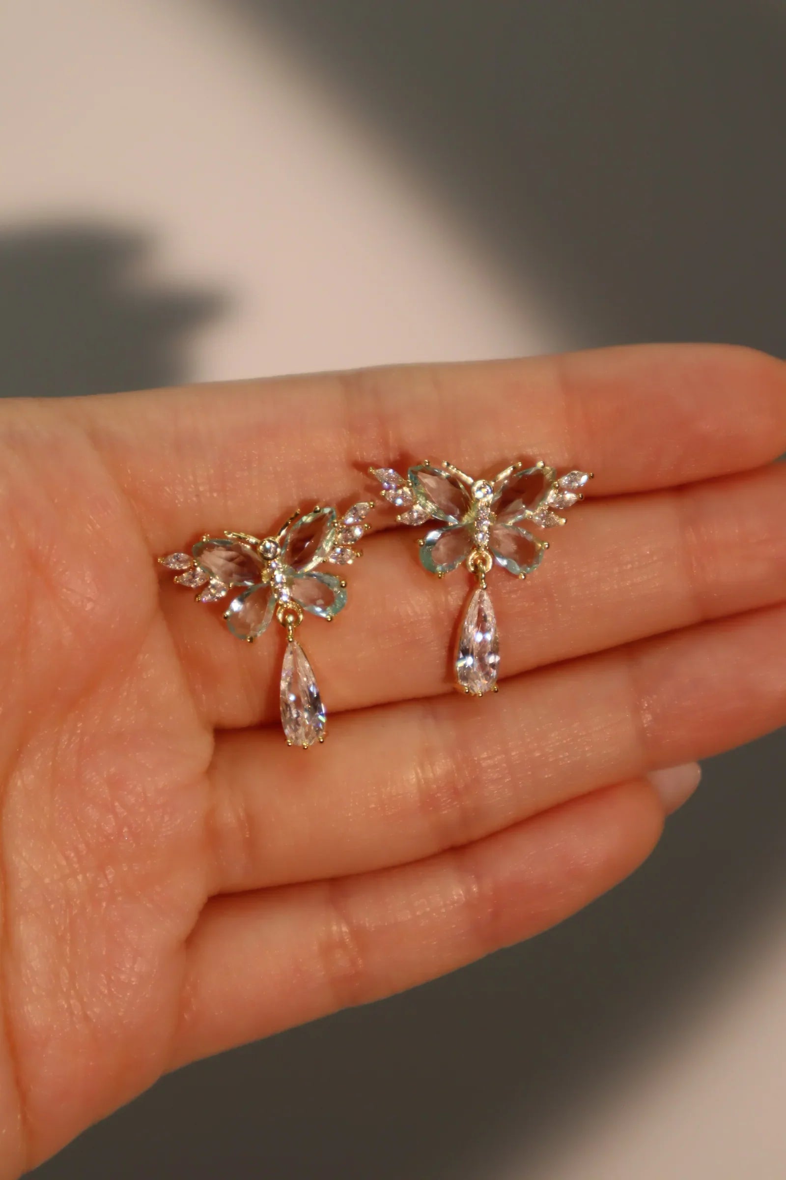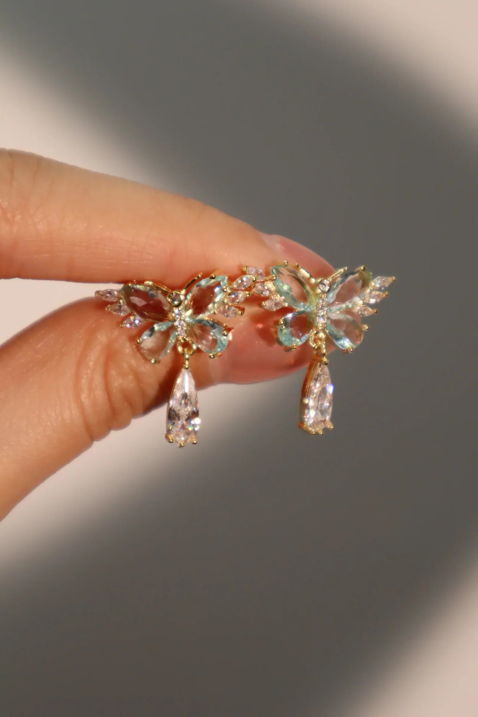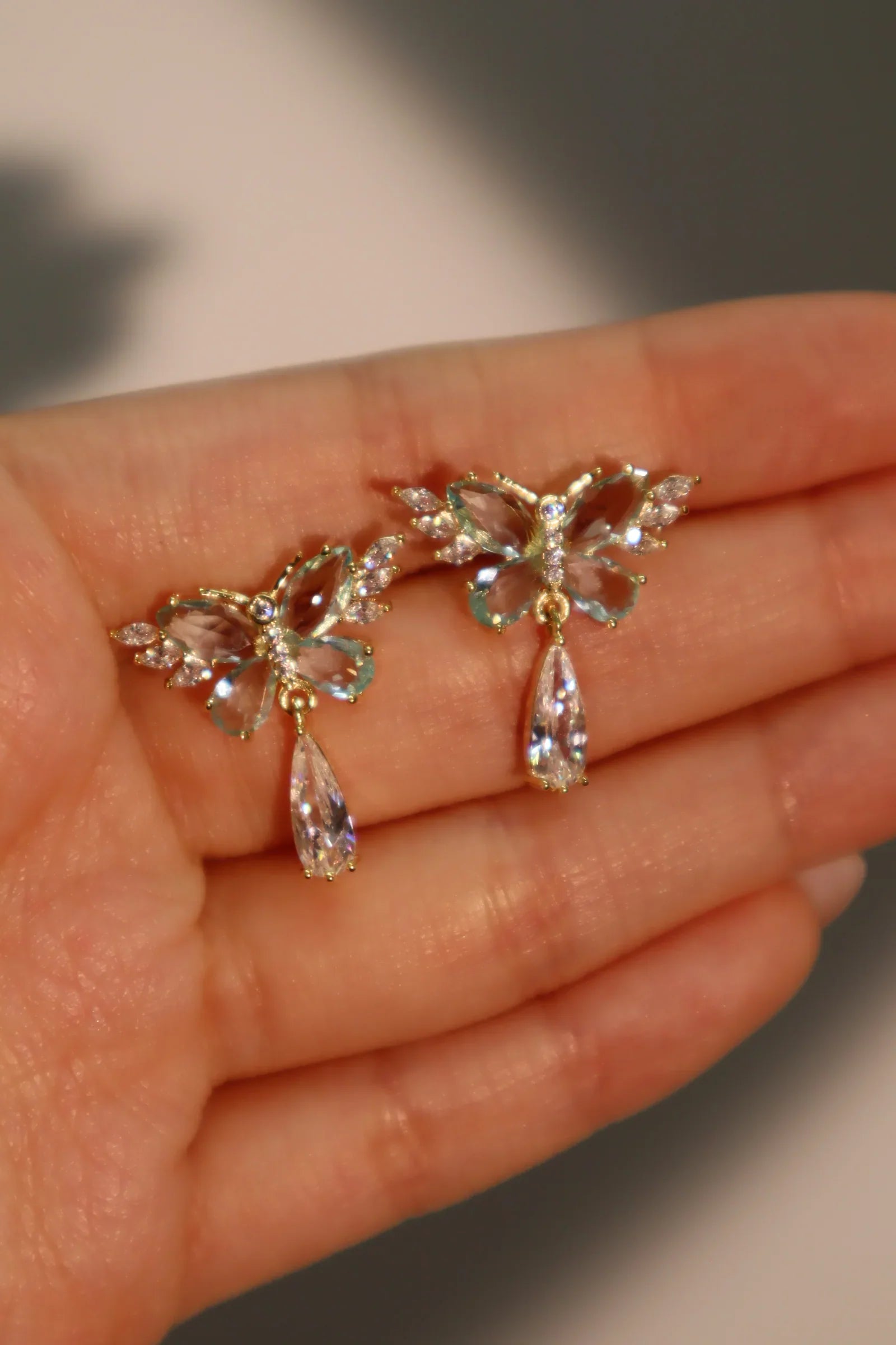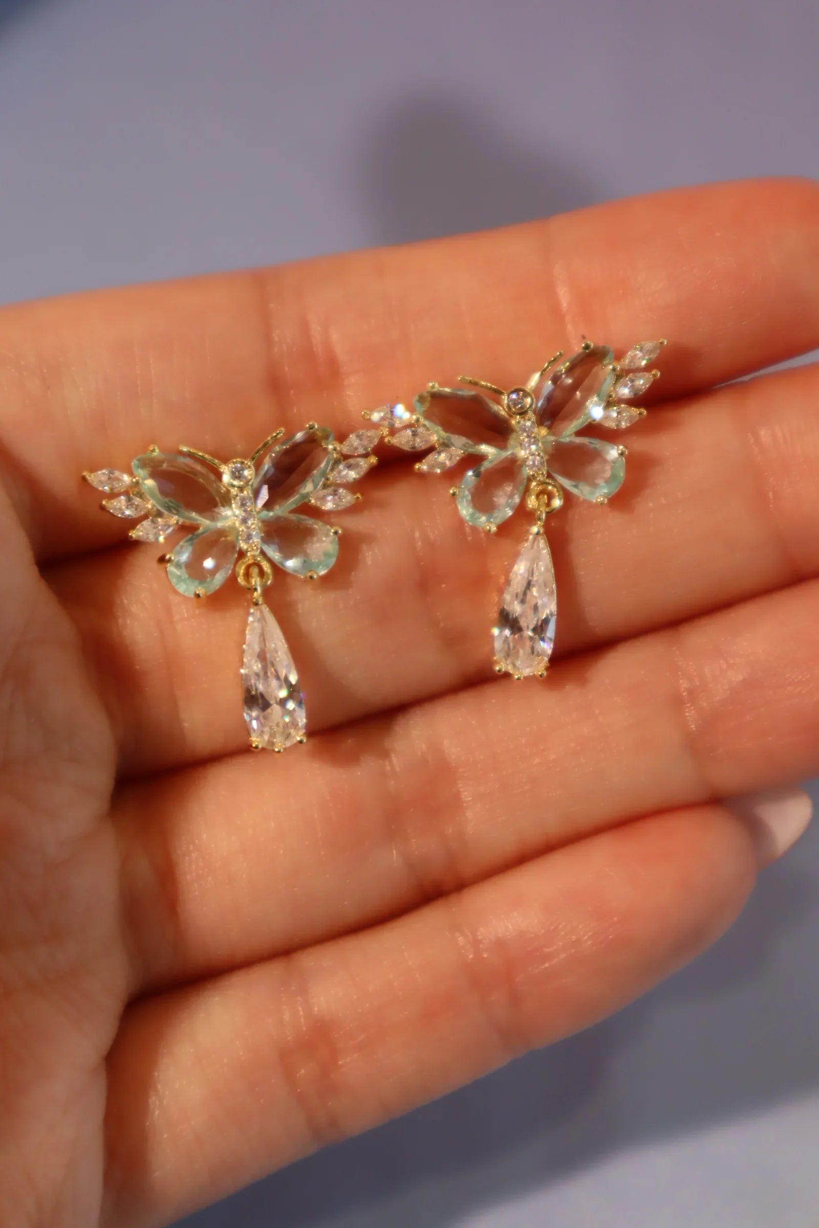 14K Altın Kaplama Safir Damlası Kelebek Küpelerimiz büyüleyicidir. Bu çift küpe, meleksi bir şekilde parlayan ve ışıldayan yüksek kaliteli zirkonya yeşil taşlarla süslenmiştir. Bir görünüme karar veremediğinizde, bu küpeleri kıyafetinizle eşleştirerek kurtarıcınız olmalarını sağlayın!