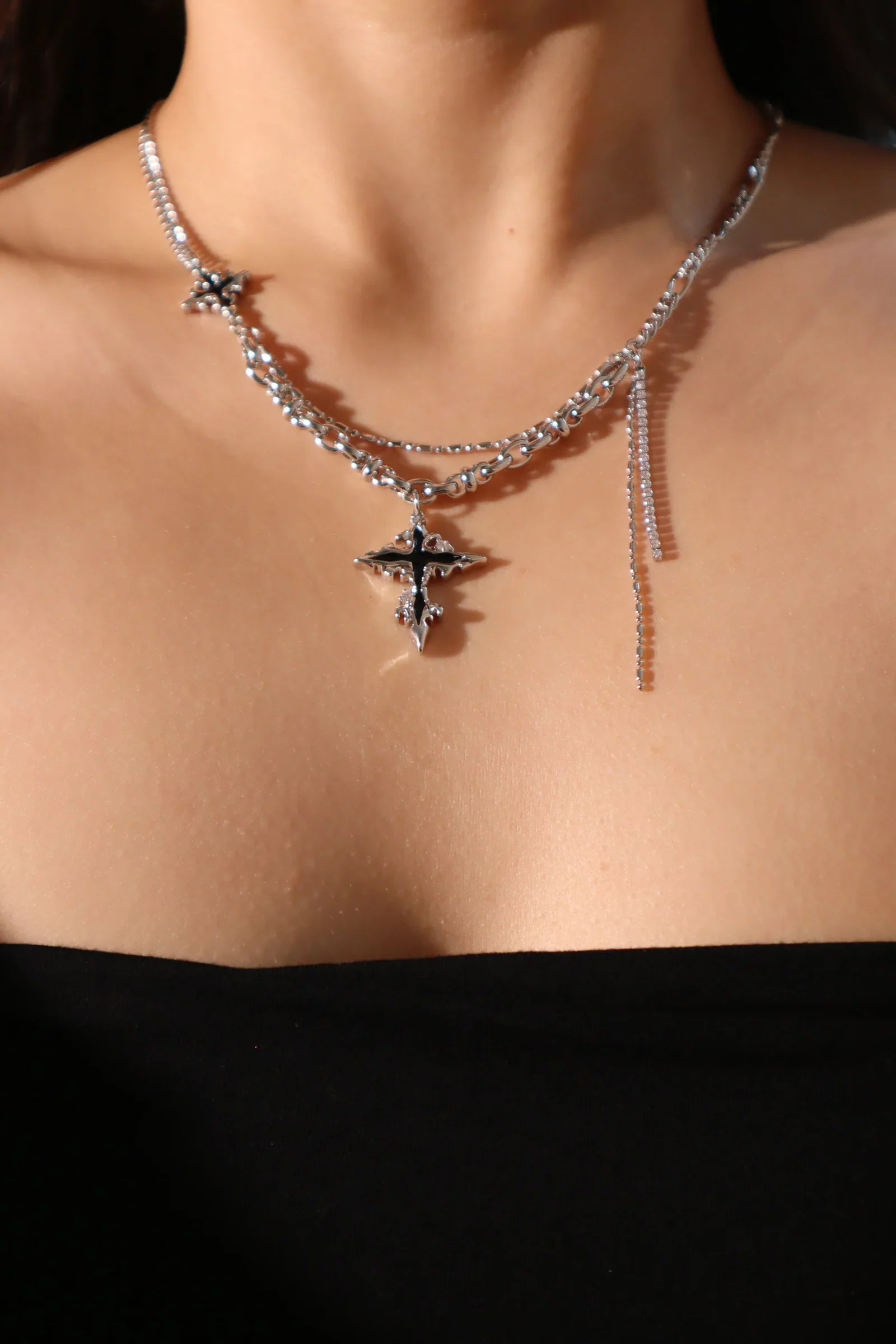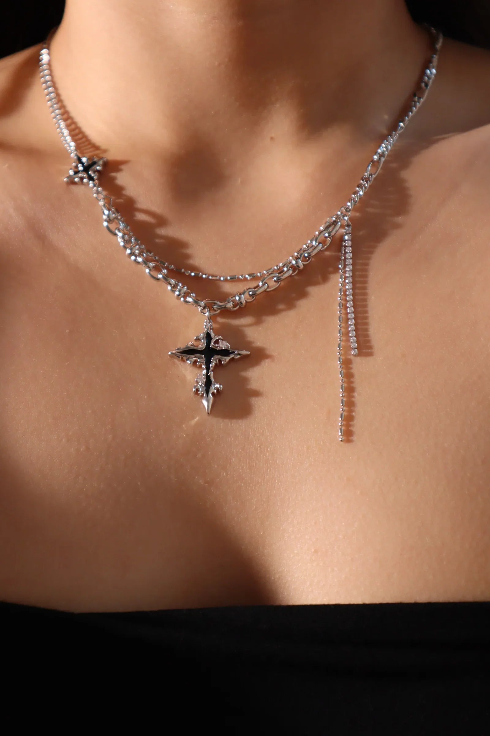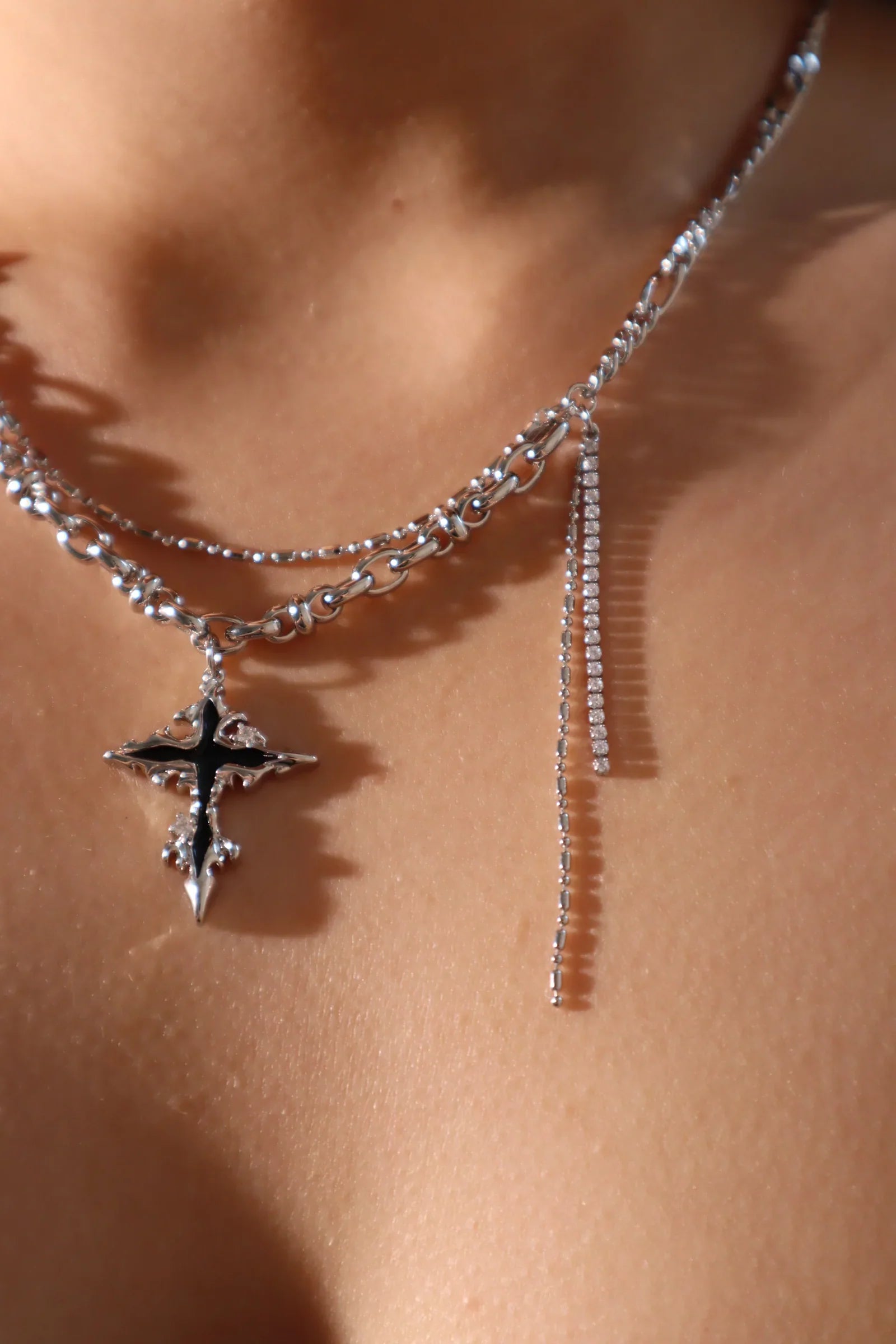 🌟 Yüksek kaliteli platin kaplama ve zirkon siyah taşlar ve elmaslarla süslenmiş bu kolye, zarif ve dayanıklı bir aksesuar seçeneğidir. Işıltısı ile her türlü kıyafeti tamamlayarak göz kamaştırır. Hem günlük kullanım hem de özel anlar için idealdir.