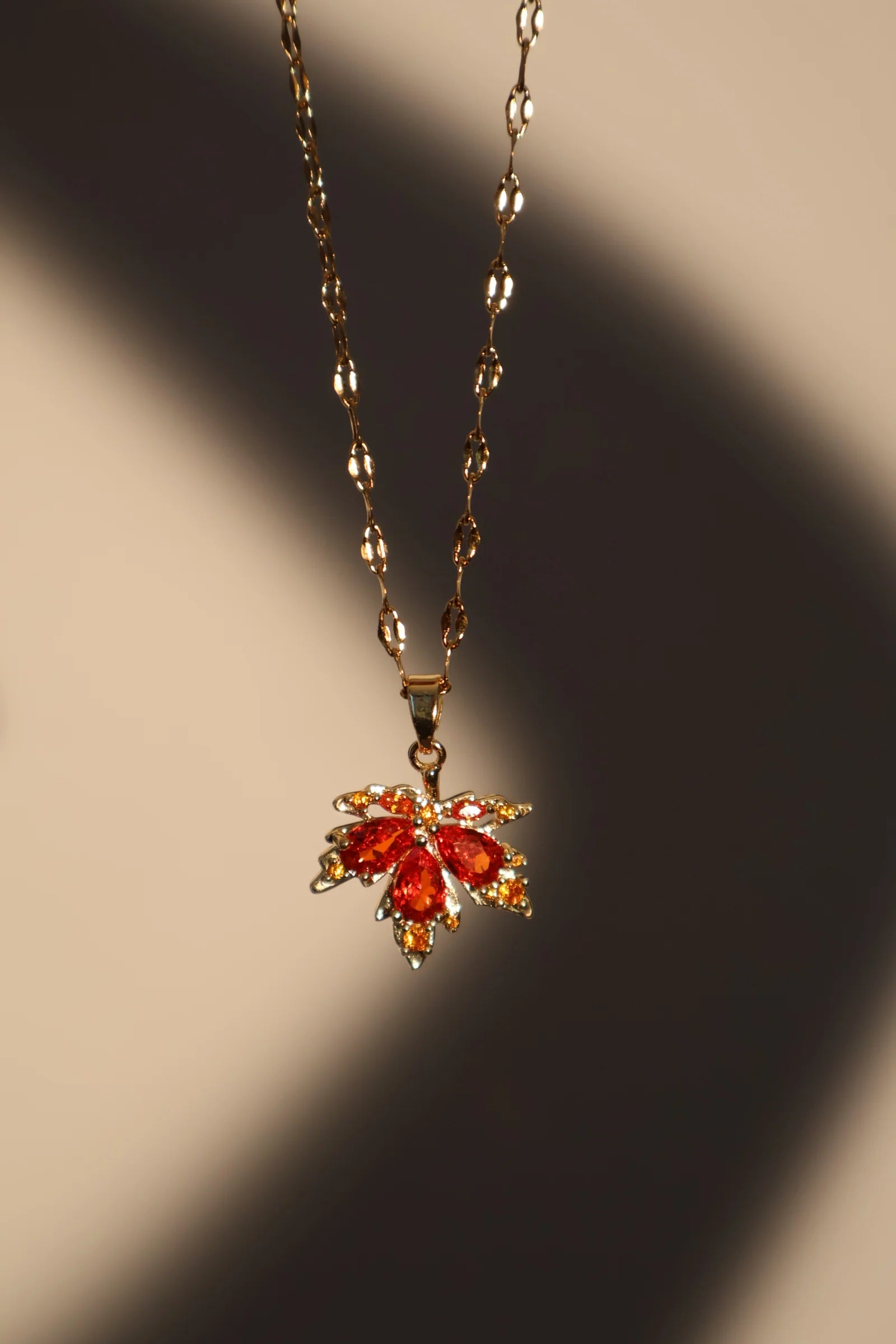 Sadeliğe elveda deyin ve 18 Ayar Altın Paslanmaz Çelik Sonbahar Kolyemizle öne çıkın. ✨ Doğru aydınlatma ile zirkonya kırmızı değerli taşlar, kombininize ışıltı katacaktır. Bu eşsiz kolye, kıyafetinizi öne çıkarır ve aynı zamanda onun veya onun için harika bir hediyedir. 🎁