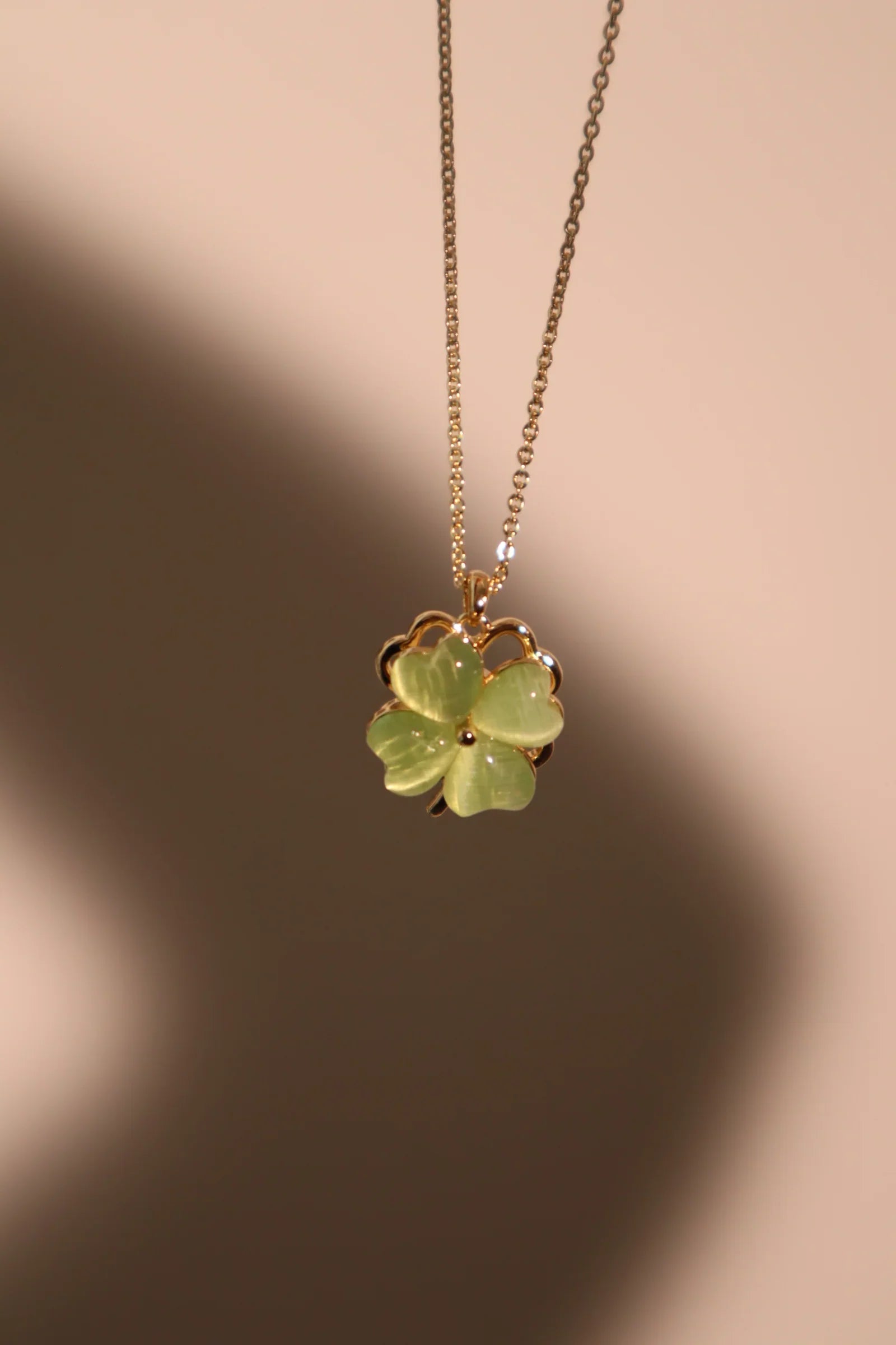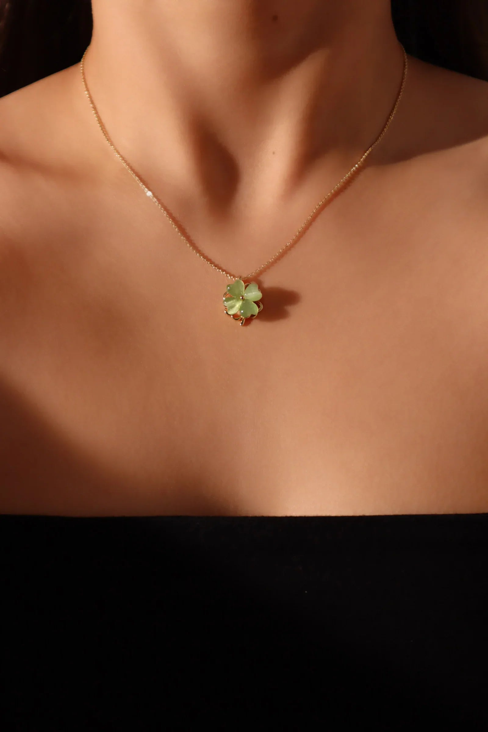 💎 18K gerçek altın kaplama + yüksek kaliteli zirkon yeşil taş (yonca kolye ucu dönebilir)