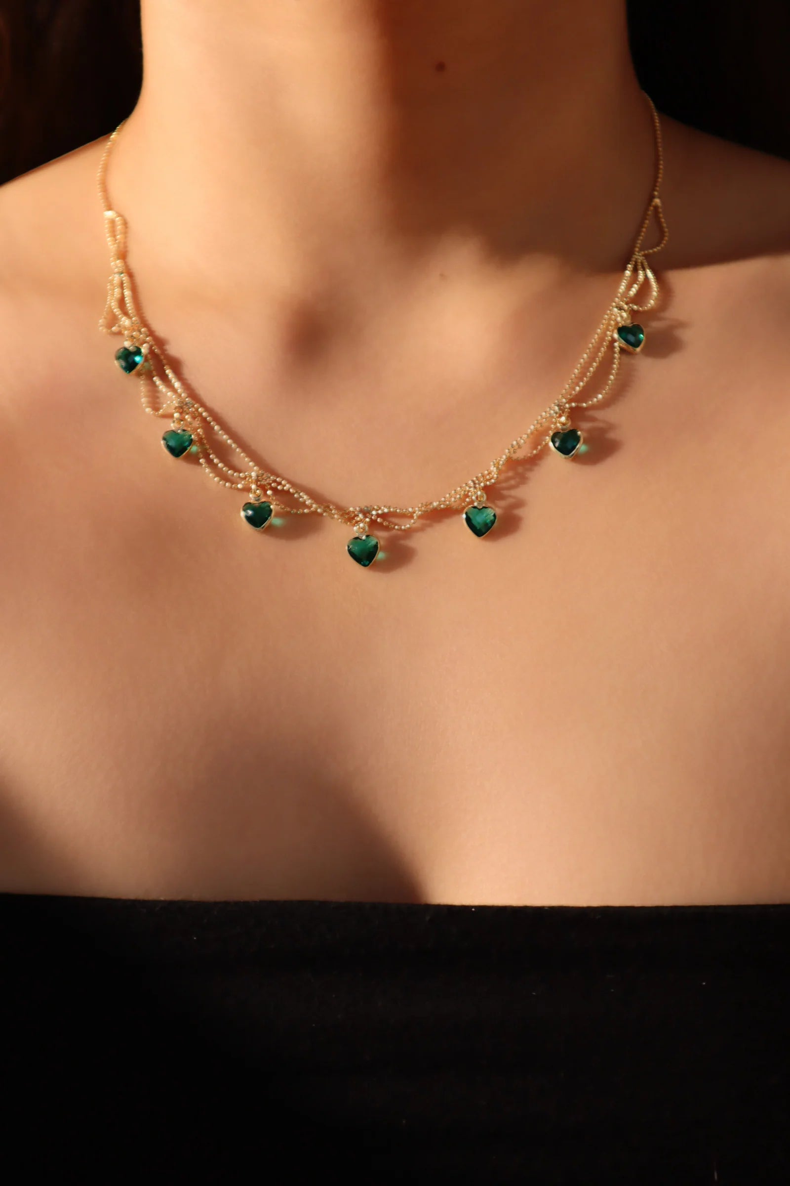 Matlığa veda edin ve 14 Ayar Gerçek Altın Kaplama Çift Katmanlı Zümrüt Taşlı Kalp Kolyemizle öne çıkın. Doğru ışıklandırmayla, zirkonya yeşil taşlar kombininize ışıltı katar. Bu eşsiz kolye kıyafetinizi öne çıkarır ve aynı zamanda hem kadınlar hem de erkekler için harika bir hediyedir.