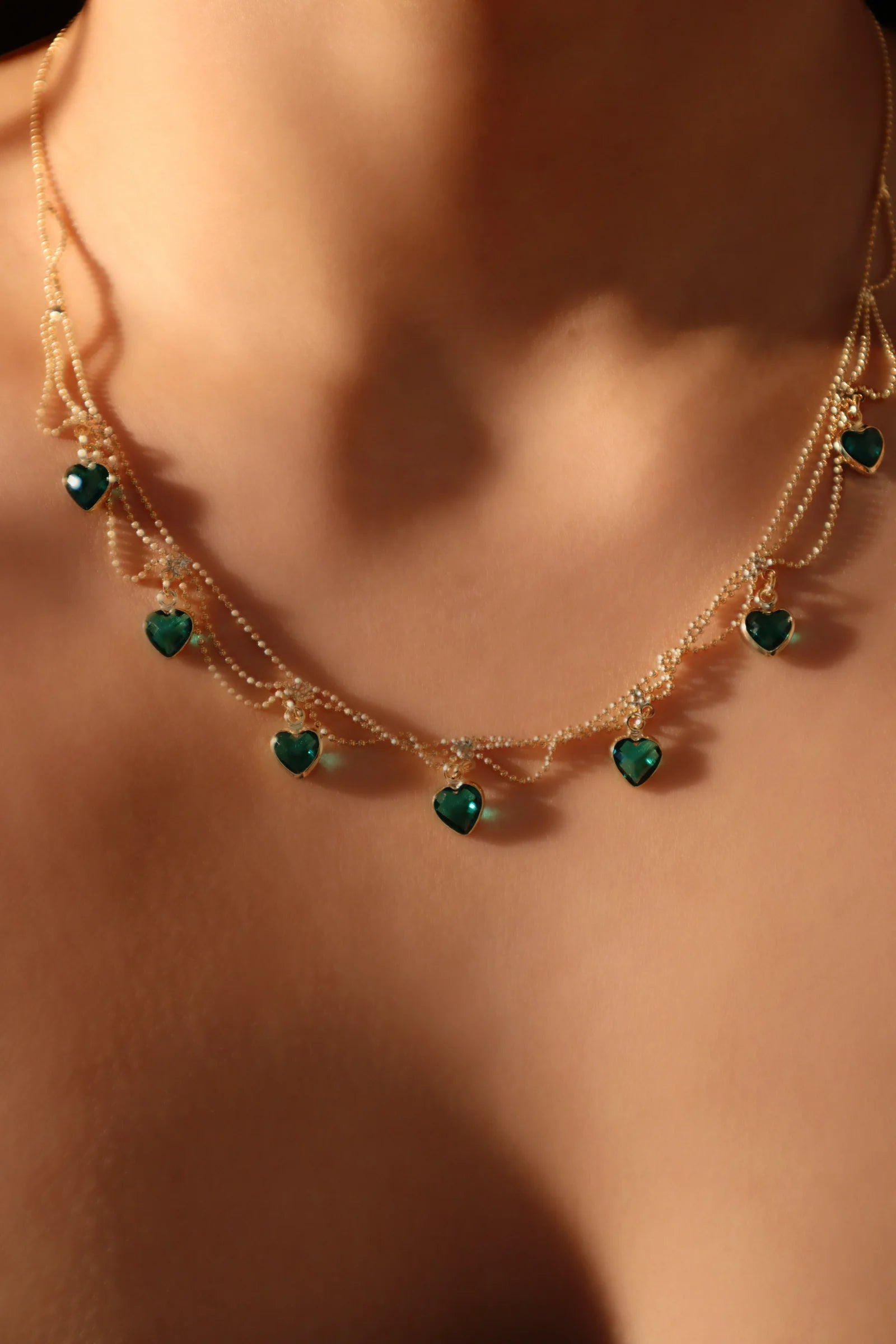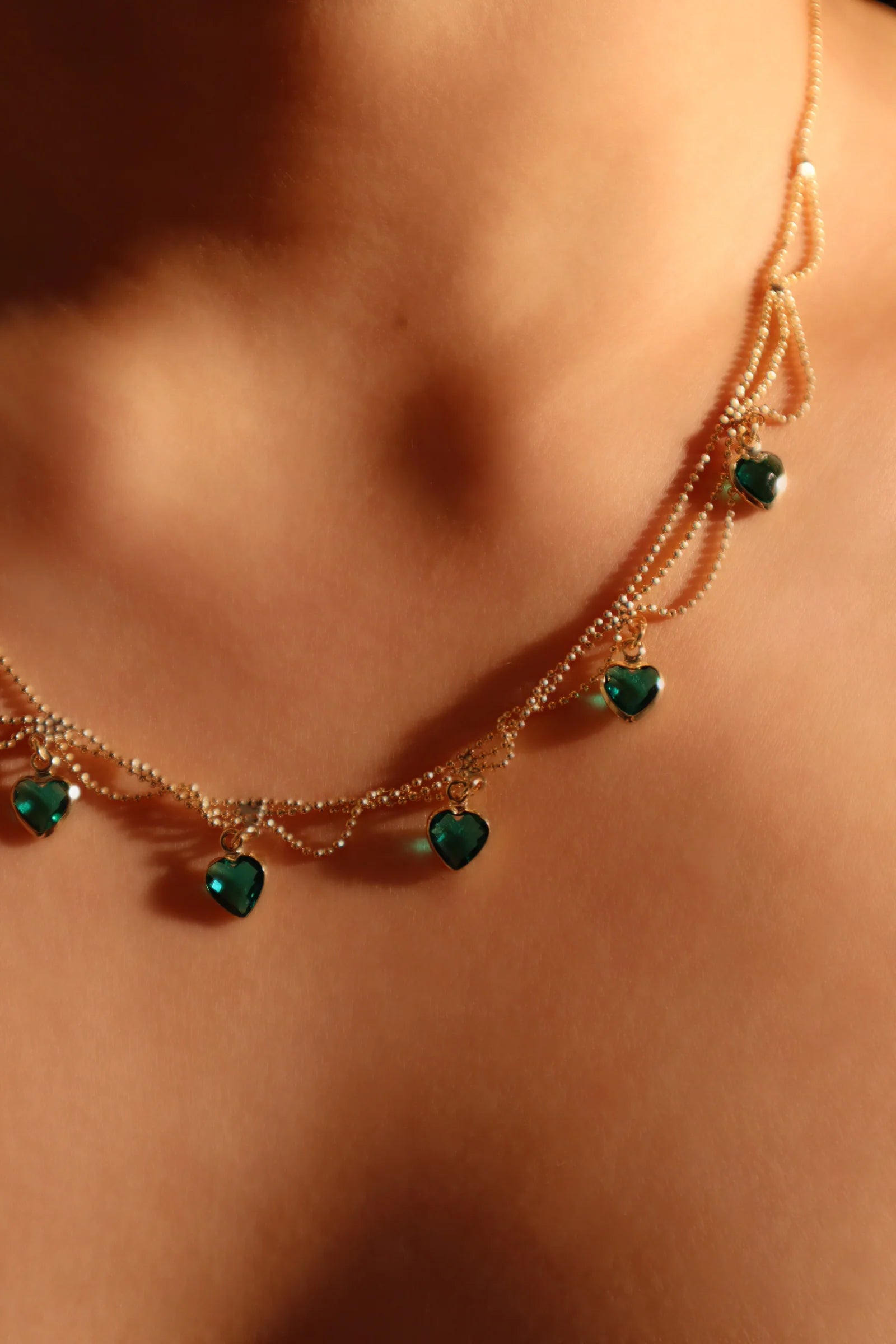 Zümrüt Taşlı Kalp Kolye